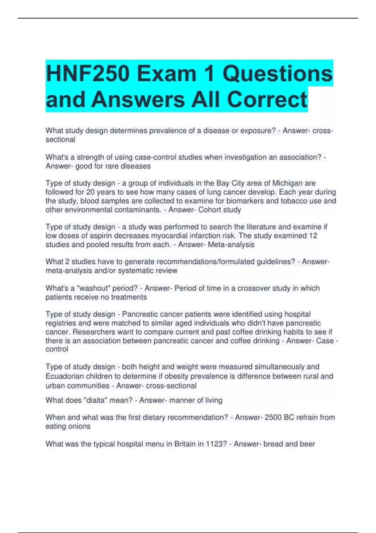 HNF250 Exam 1 Questions and Answers All Correct 2 Exam (elaborations) HNF250 Final Exam Questions and Revised Answers All Correct 3 Exam (elaborations) HNF 250 Quiz 2 Questions with All Correct Answers 4 Exam (elaborations) HNF 250 QUIZ 4 QUESTIONS WITH CORRECT ANSWERS (GRADED A+) 5 Exam (elaborations) HNF 250 QUIZ 2 QUESTIONS WITH CORRECT ANSW