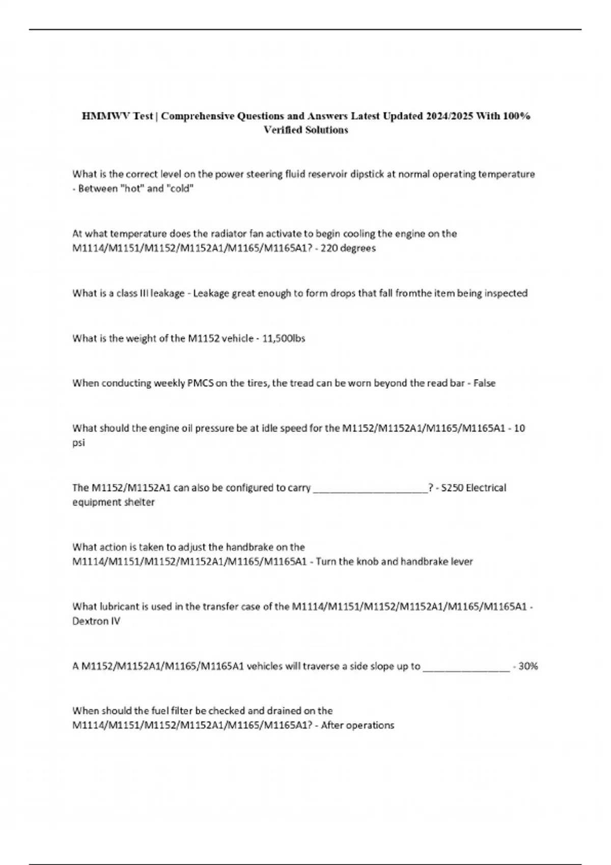 Package deal::HMMWV Exams Compilation