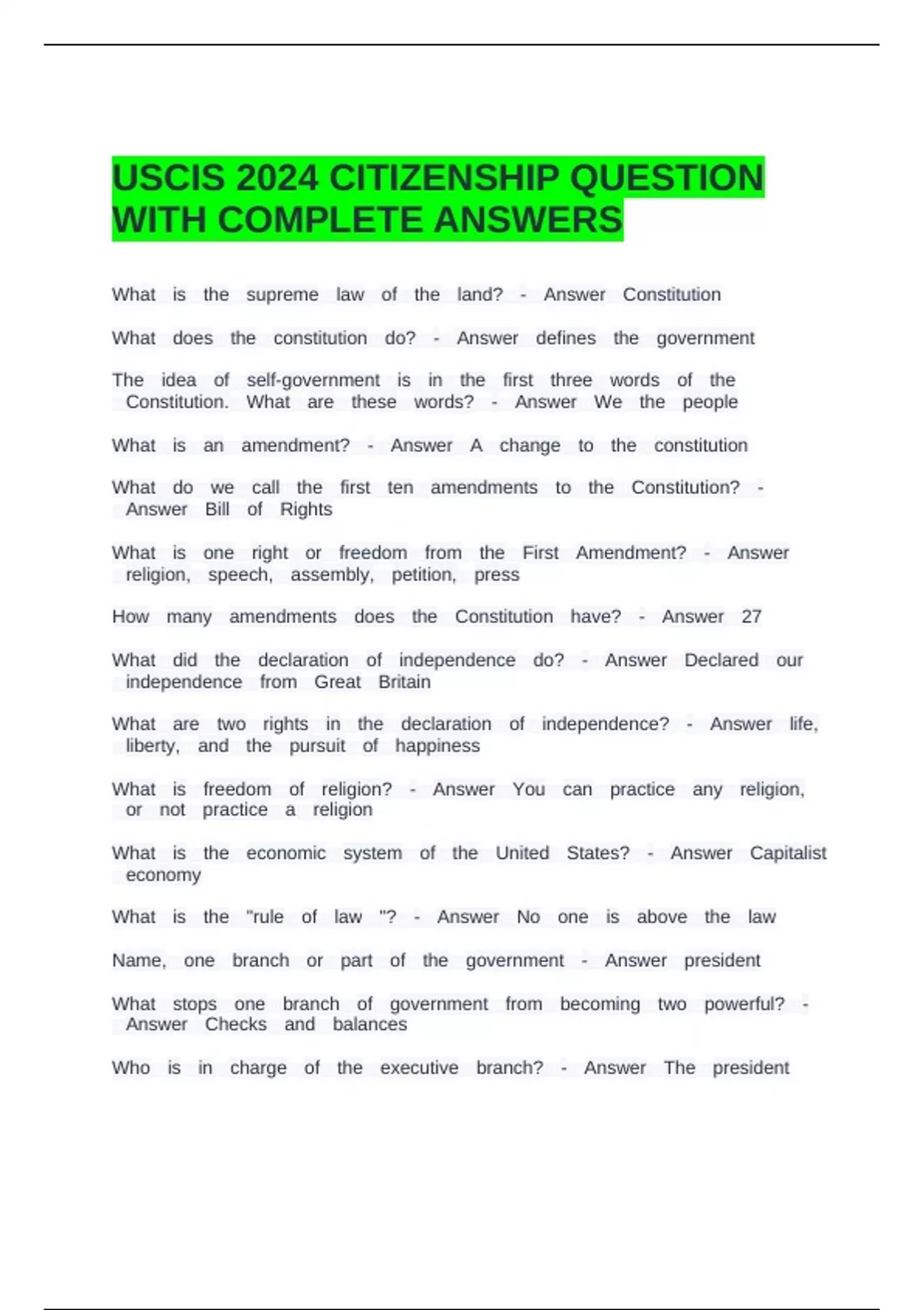 PACKAGE DEAL FOR USCIS QUESTIONS AND ANSWERSS