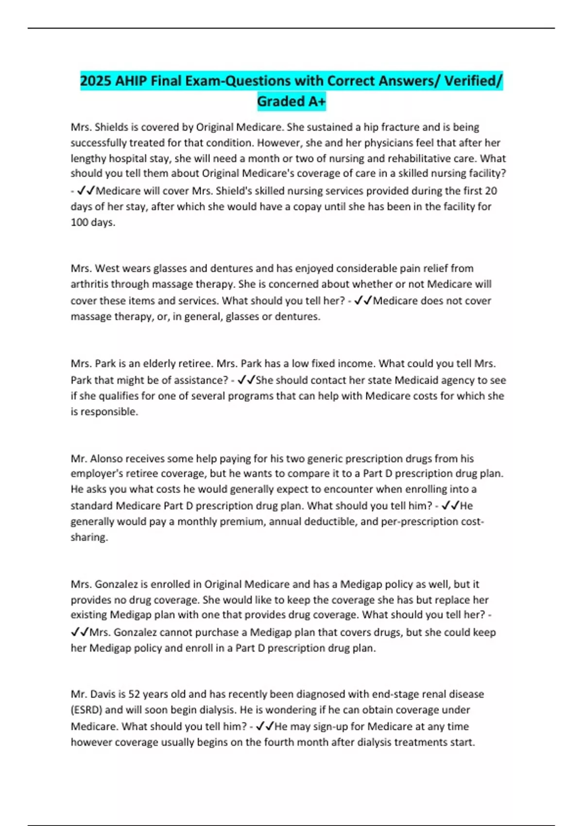 2025 AHIP EXAMS BUNDLE-Questions with Correct Answers/Verified/ COMPLETE AND ACCURATE