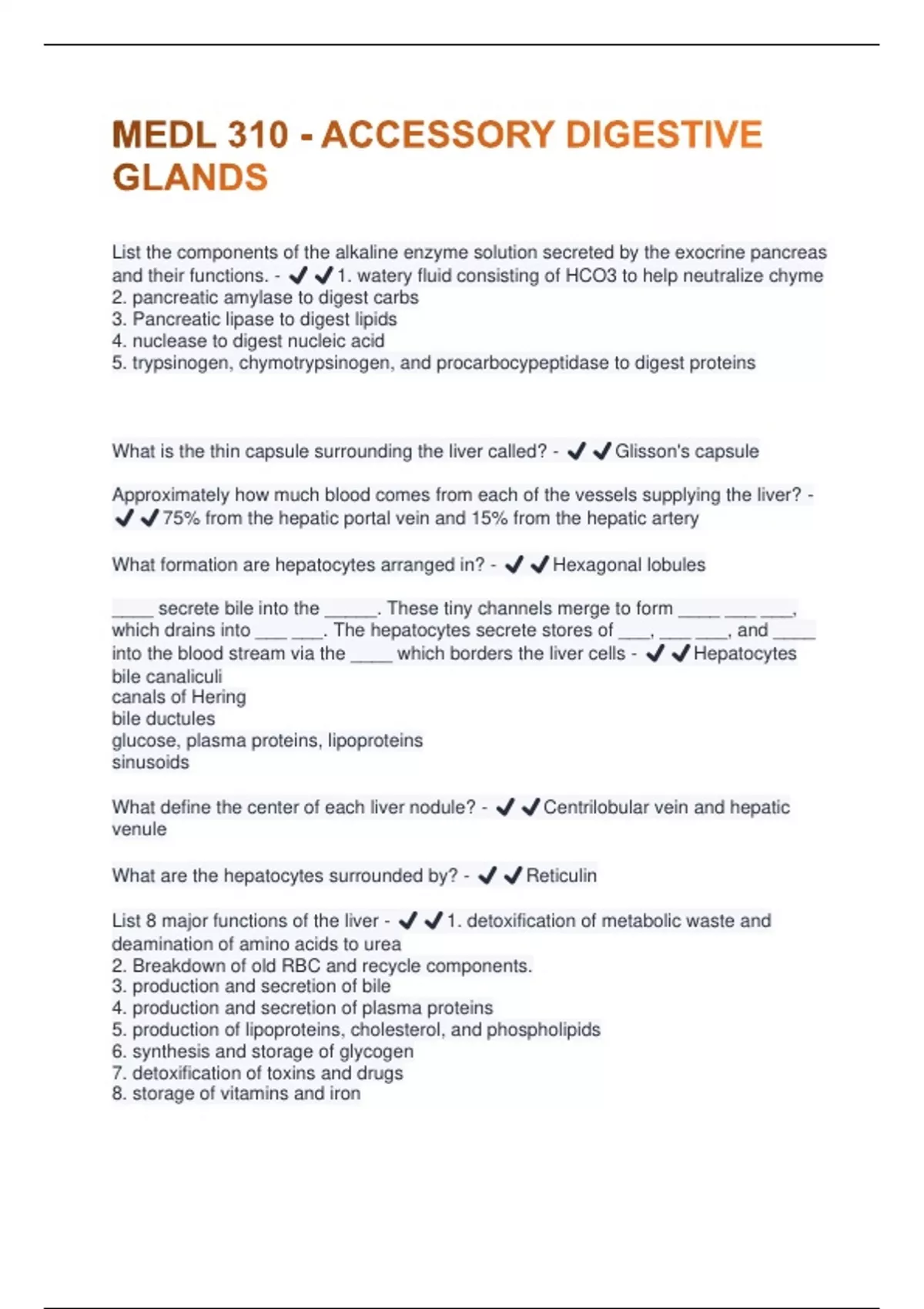 MEDL 310 - ACCESSORY DIGESTIVE GLANDS QUIZZES & ANS GRADED A+
