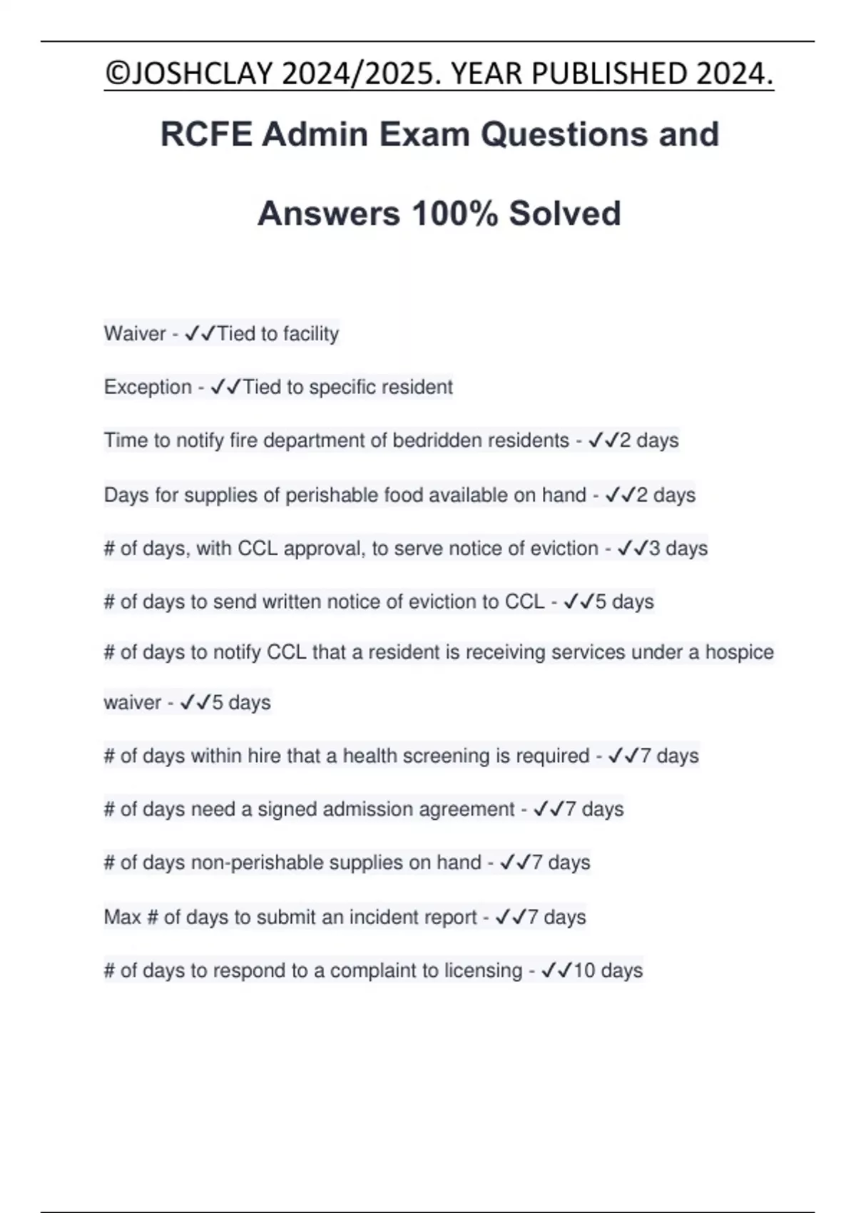 RCFE EXAM PACKAGE DEAL QUESTIONS AND ANSWERS 100% SOLVED | GRADED A+ | VERIFIED AND APPROVED | GUARANTEED SUCCCESS