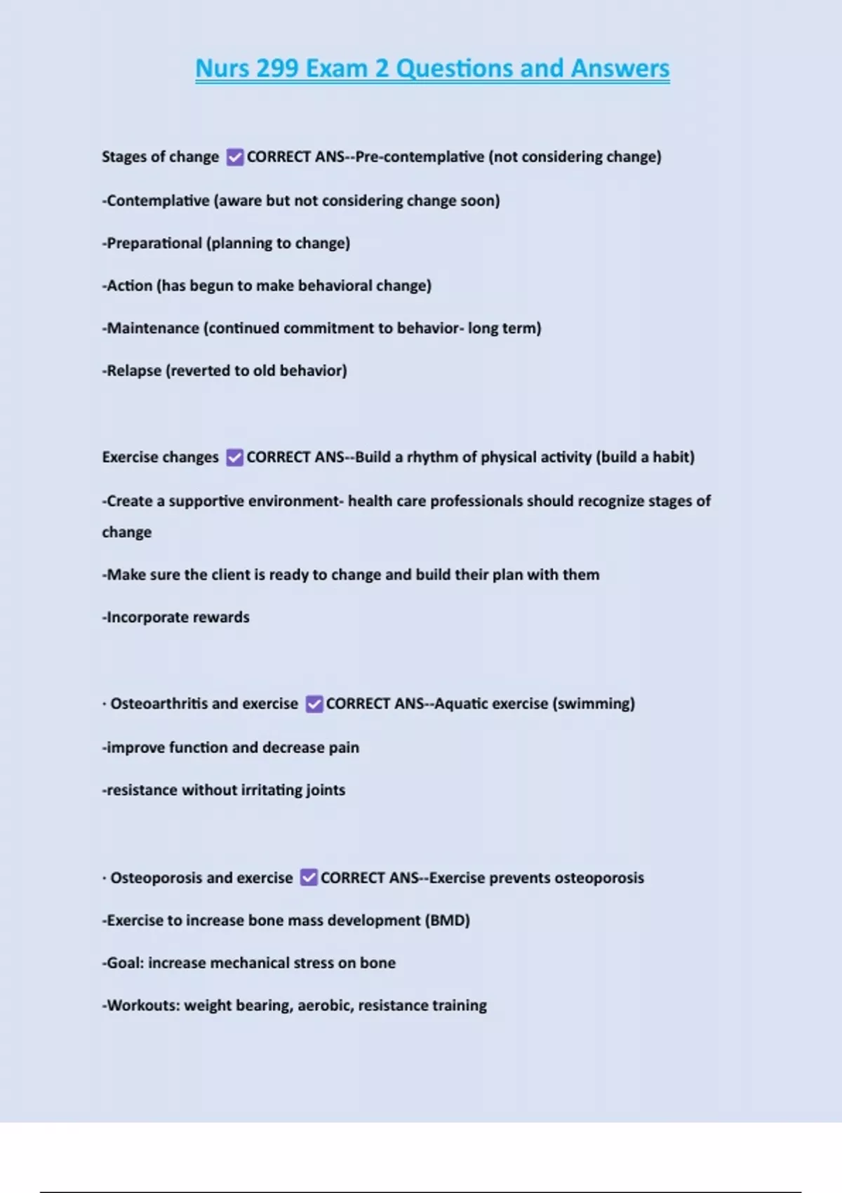 PACKAGE-::NURS 299 EXAMS 100% SOLVED (GUARANTEED SUCCESS)