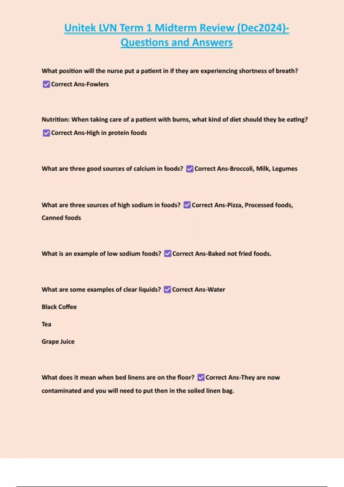 Unitek LVN Term 1 Midterm Review (Dec2024)- Questions and Answers 2 Exam (elaborations) midterm.unitek term 1 Questions and Answers 3 Exam (elaborations) Infection Control (Unitek LVN term 1) Questions and Answers 100% Pass 4 Exam (elaborations) Term 1 Unitek Final Exam with Complete Solutions 5 Exam (elaborations) Final Exam- LVN Term 1 UNITEK