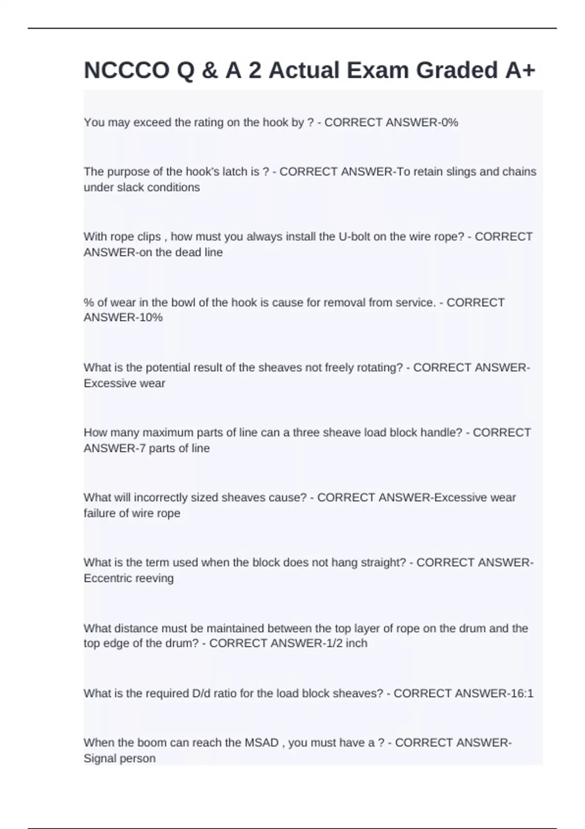 NCCCO Q & A 2 Actual Exam Graded A+