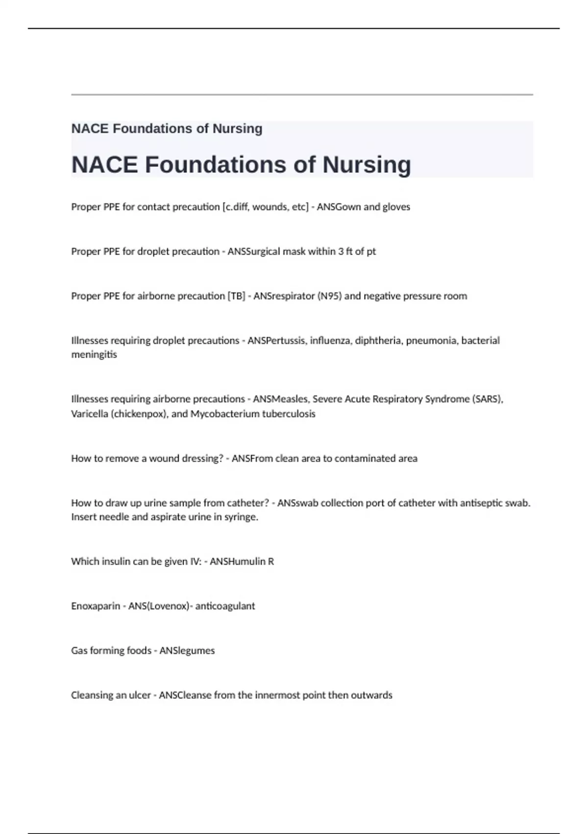 PACKAGE DEAL FOR: NACE - OB PRACTICE QUESTIONS AND ANSWERS LATEST EDITION NOW AVAILABLE NOW!!!