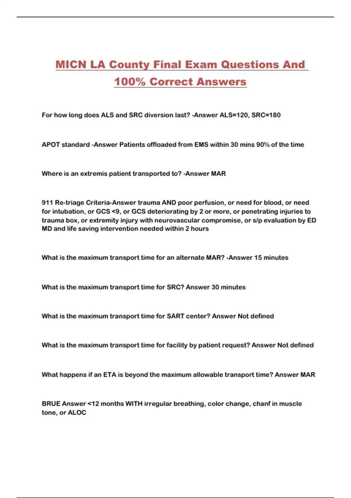 MICN LA County Final Exam Questions And 100% Correct Answers