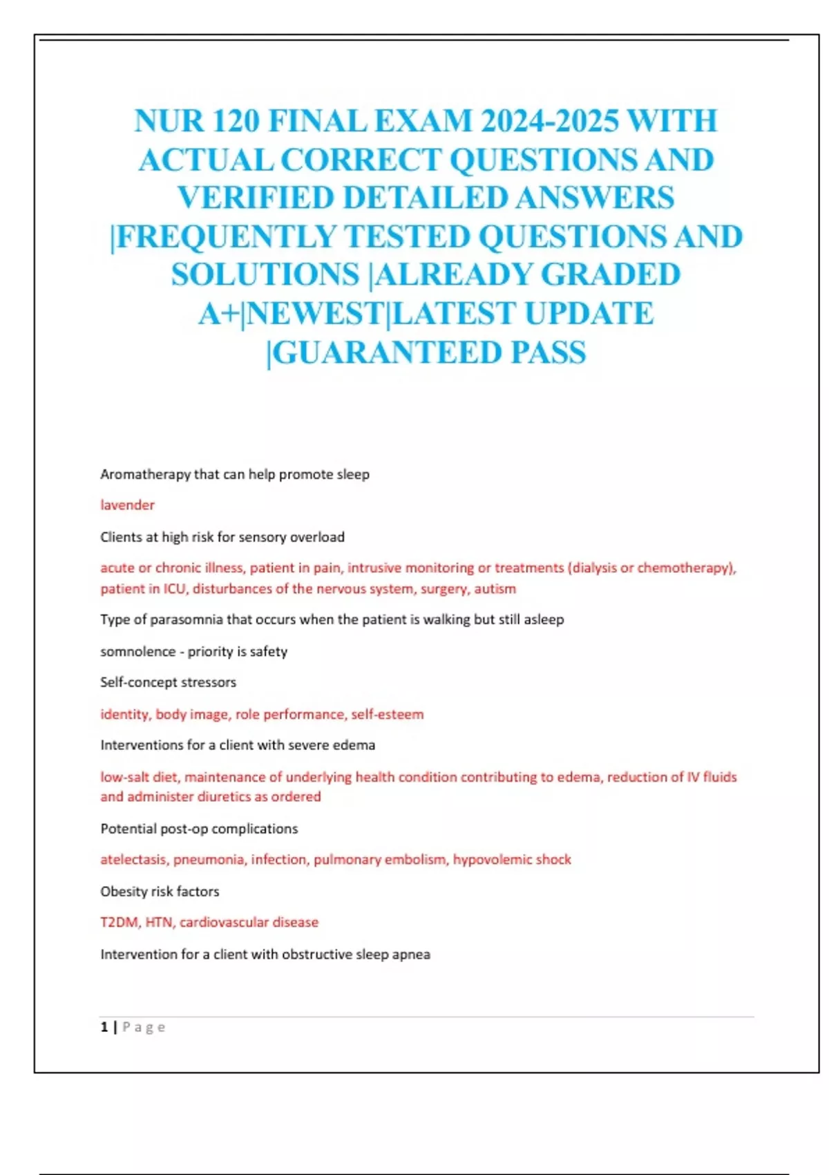NUR 120 EXAM 1,2,3 AND FINAL WITH ACTUAL CORRECT QUESTIONS AND VERIFIED DETAILED ANSWERS |FREQUENTLY TESTED QUESTIONS AND SOLUTIONS |ALREADY GRADED A |NEWEST|LATEST UPDATE |GUARANTEED PASS