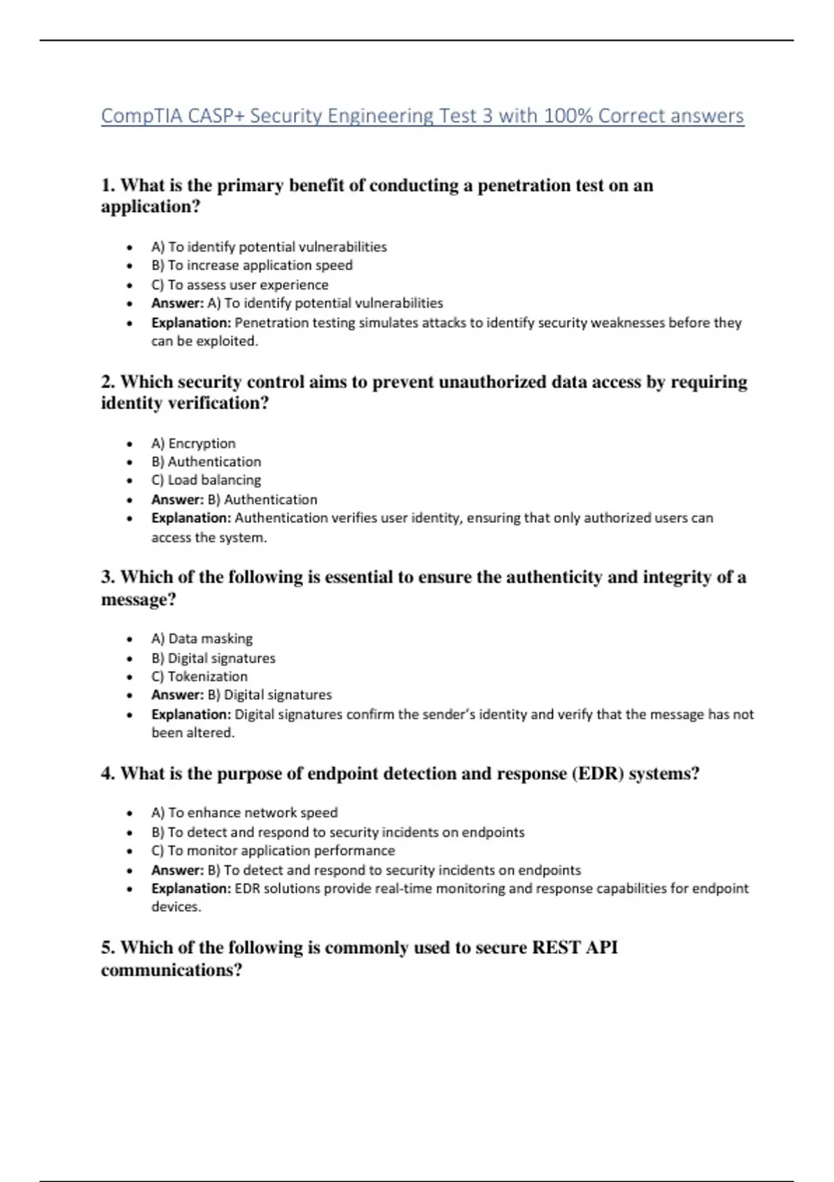 CompTIA CASP+ Security Engineering Tests with 100% Correct answers