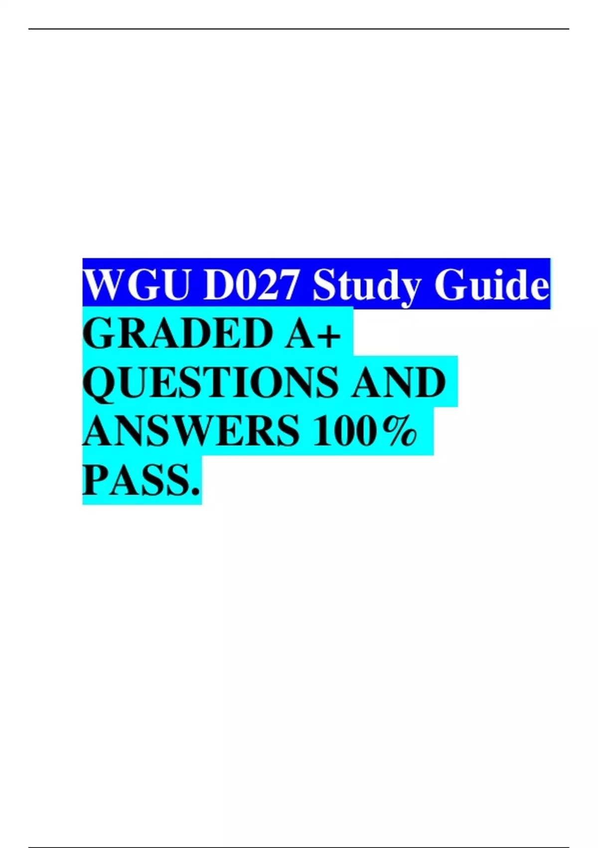 WGU D027 OA EXAM REAL EXAM AND STUDY GUIDE QUESTIONS AND CORRECT ANSWERS . WGU D027 Study Guide GRADED A+ QUESTIONS AND ANSWERS 100% PASS.