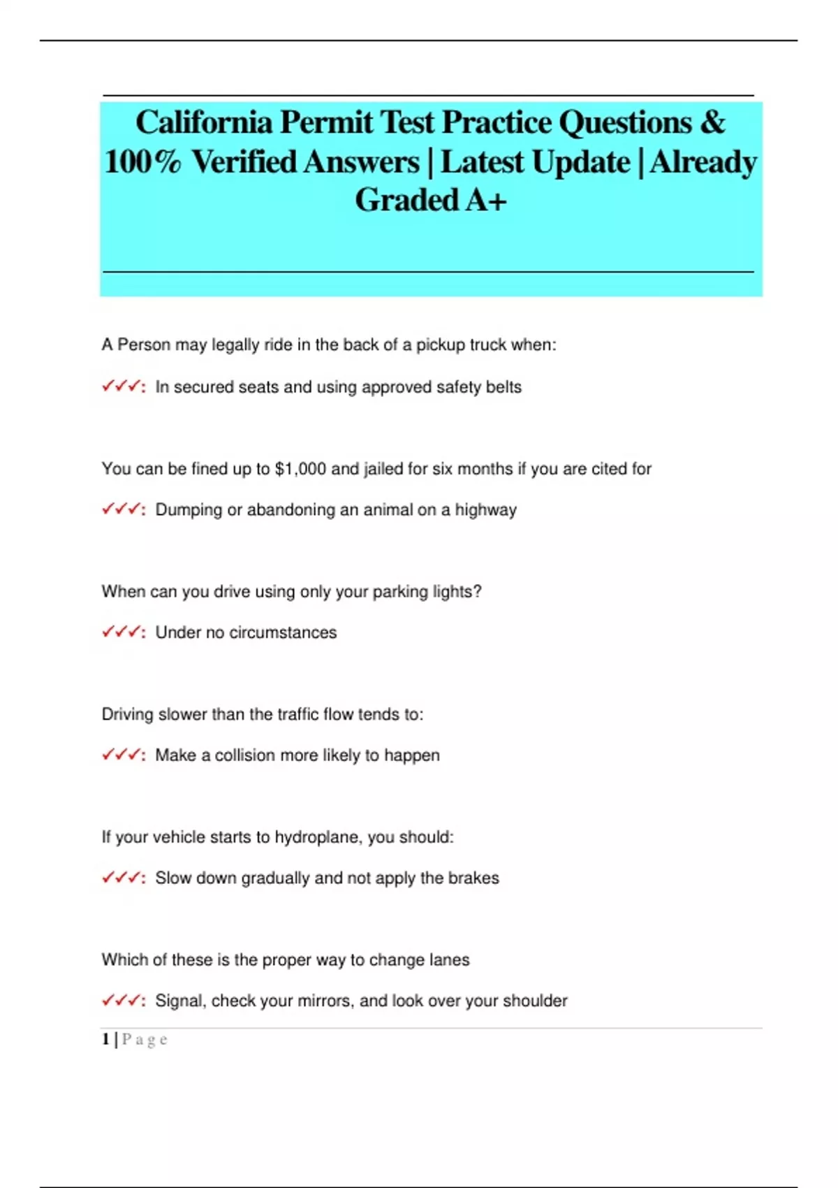 California Permit Test 2018 (Class C) Questions and Answers (100% Pass)
