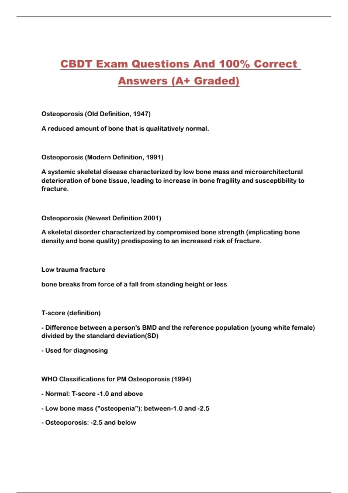 Certified Bone Densitometry Technologist (CBDT) Exam Questions And 100% Correct Answers