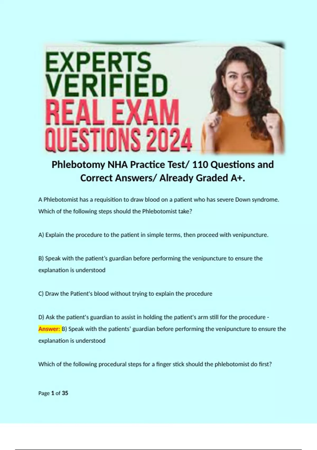 1 Exam (elaborations) NHA Phlebotomy Exam/ 111 Quizzes with Verified Solutions/ 2 Exam (elaborations) NHA Phlebotomy Exam 2024/ 116 Q&A/ Already Graded A+. 3 Exam (elaborations) NHA Phlebotomy Certification Exam/ 218 Q&A/ A+ Score Solutions 4 Exam (elaborations) PHLEBOTOMY NATIONAL EXAM (NHA) 187 Q&A/ A+ SCORE SOLUTION. 5 Exam (elabor