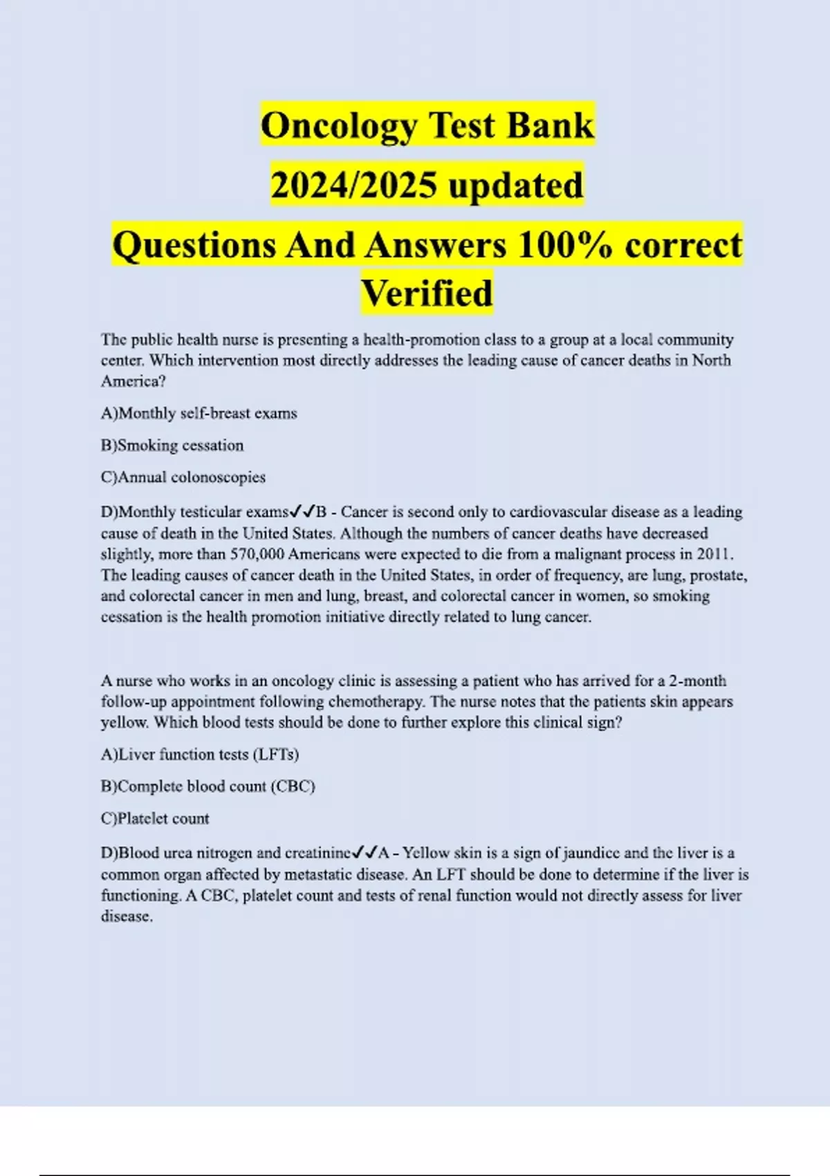 Oncology Test Bank updated Questions And Answers
