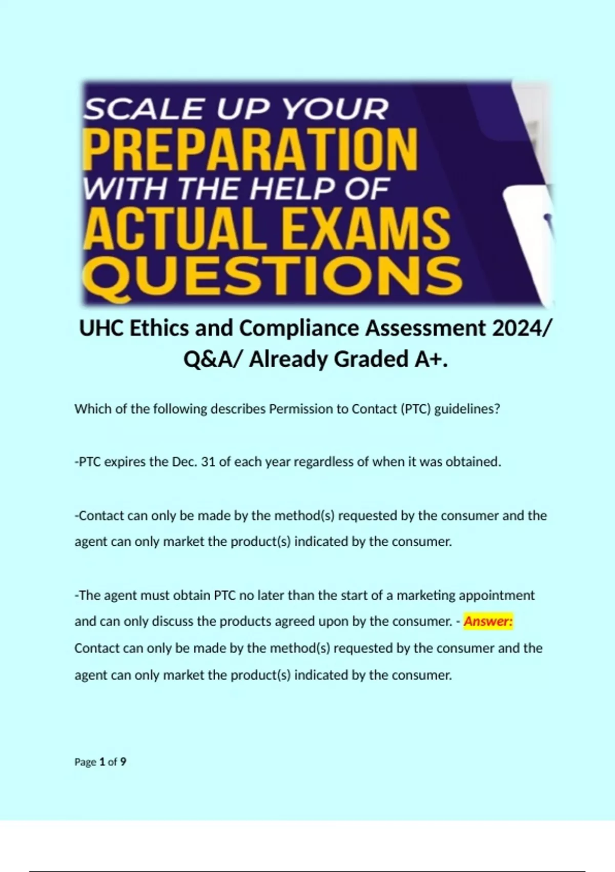 Exam (elaborations) UHC 2022 Ethics and Compliance Test/ Questions & Correct Answers. 2 Exam (elaborations) UHC Ethic and Compliance 2022/ Questions with Certified Solutions. 3 Exam (elaborations) UHC Ethics and Compliance Test 2020 Review/ Q&A/ A+ Score Solution. 4 Exam (elaborations) UHC Ethics and Compliance Assessment 2024/ Q&A/ Already Gra