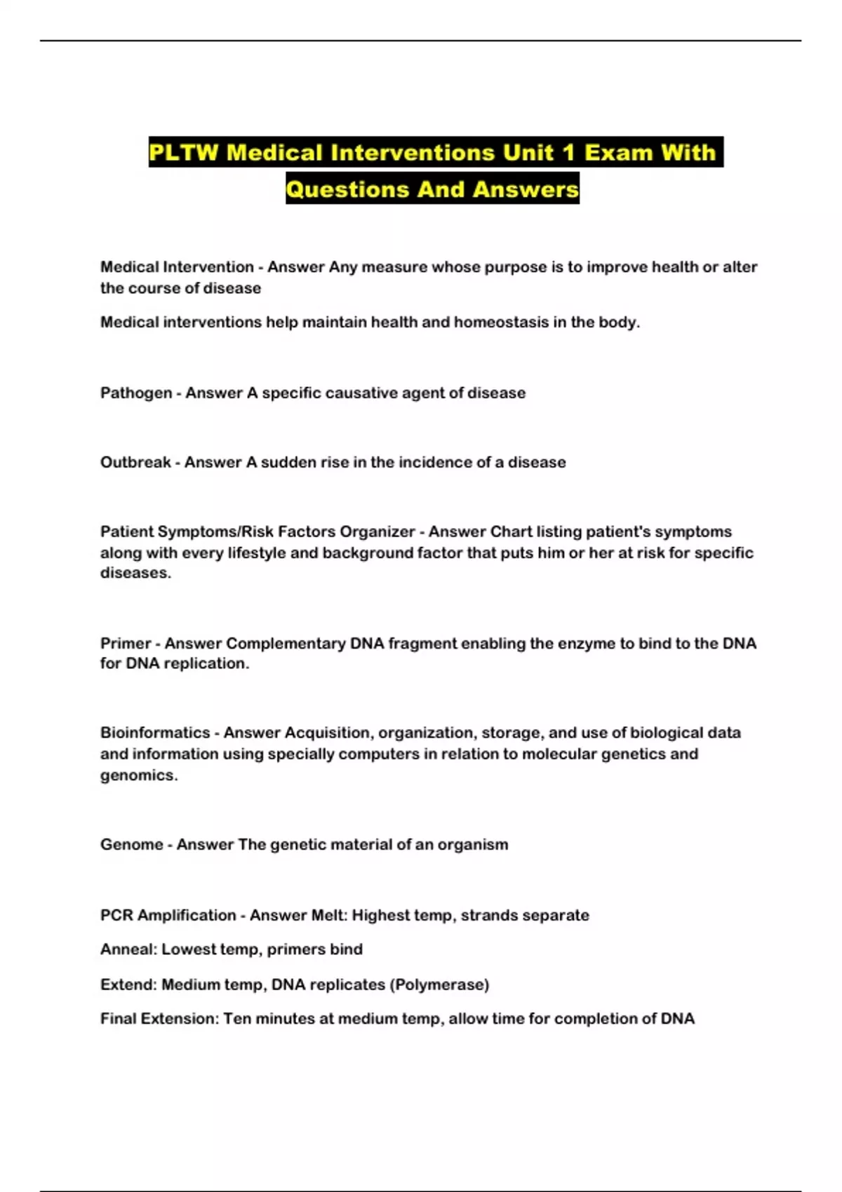 PLTW Medical Interventions Unit 1 Exam With Questions And Answers