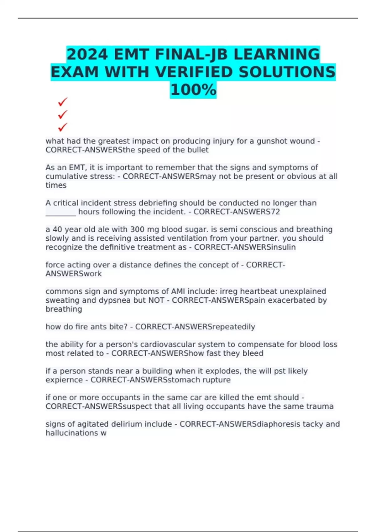 2024 JB LEARNING EMT BASIC BLS RESUSCITATION CHAPTER 13 EXAM WITH CORRECT ANSWERS 2024 JB LEARNING EMT CHAPTER 16 EXAM WITH CORRECT ANSWERS 100% 2024 JB LEARNING EMT SHOCK CHAPTER 12 EXAM WITH CORRECT ANSWERS 2024 TRAUMA JB LEARNING EMT-B CHAPTER 24 TEST EXAM WITH CORRECT ANSWERS