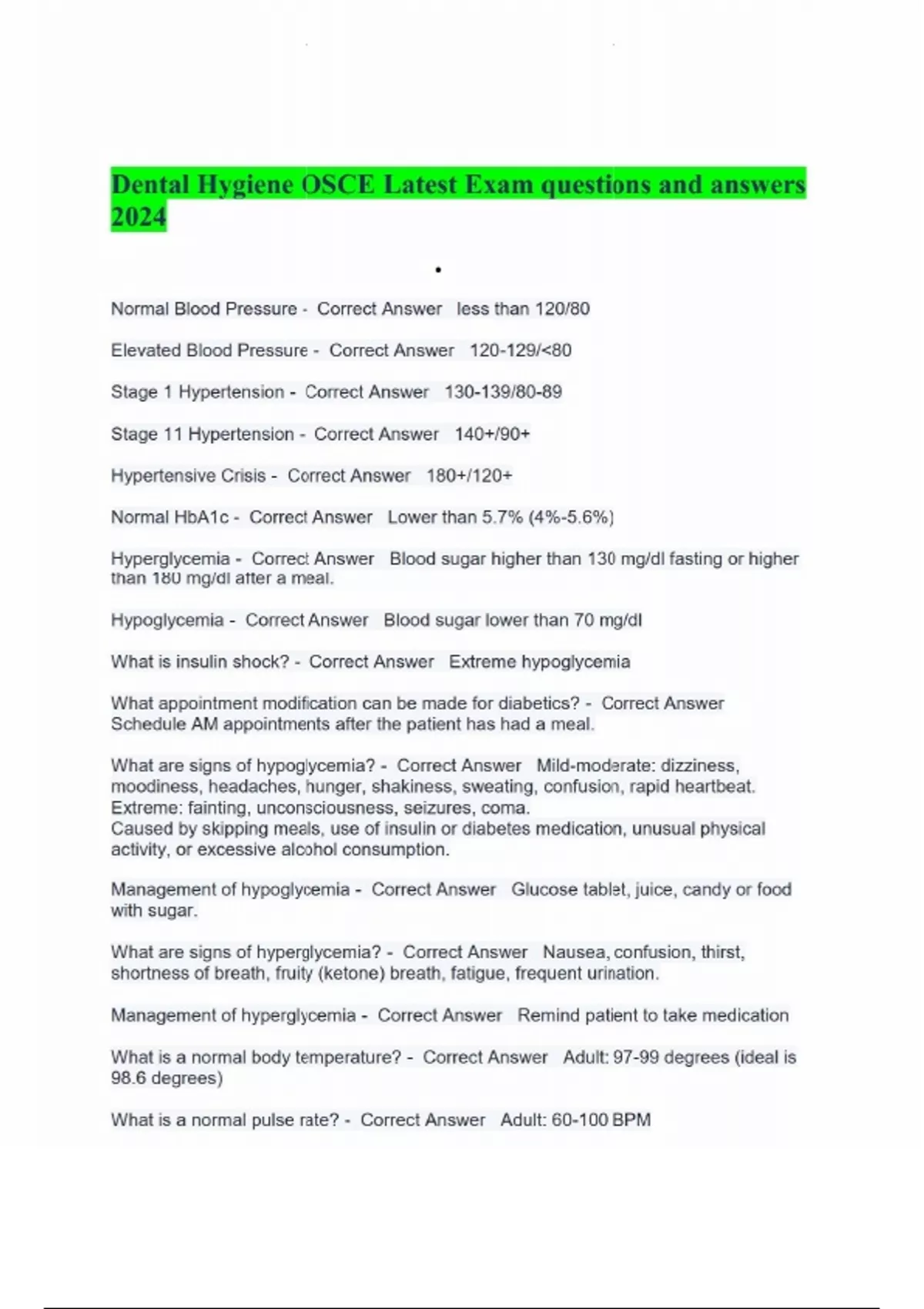 Dental Hygiene OSCE latest Exam questions and answers (grade A+) 2024