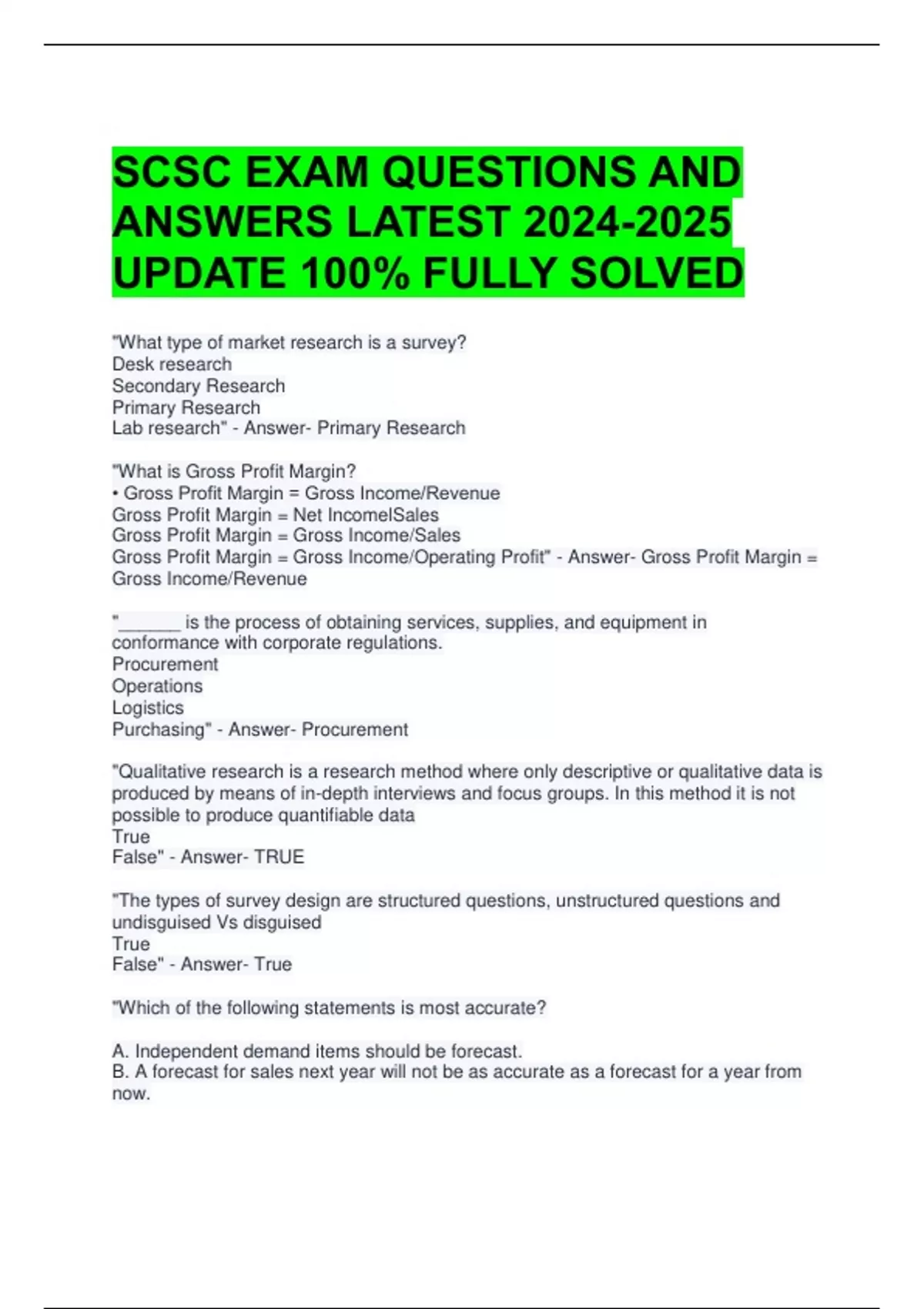 SCSC EXAM QUESTIONS AND ANSWERS LATEST UPDATE 100% FULLY SOLVED 2 Exam (elaborations) SCSC QUIZ 15 QUESTIONS WITH ALL CORRECT ANSWERS 3 Exam (elaborations) SCSC EXAM QUESTIONS AND CORRECT ANSWERS ALREADY PASSED 4 Exam (elaborations) SCSC EXAM 2 ACTUAL QUESTIONS AND ANSWERS 100% CORRECT 5 Exam (elaborations) SCSC EXAM 1 QUESTIONS AND A
