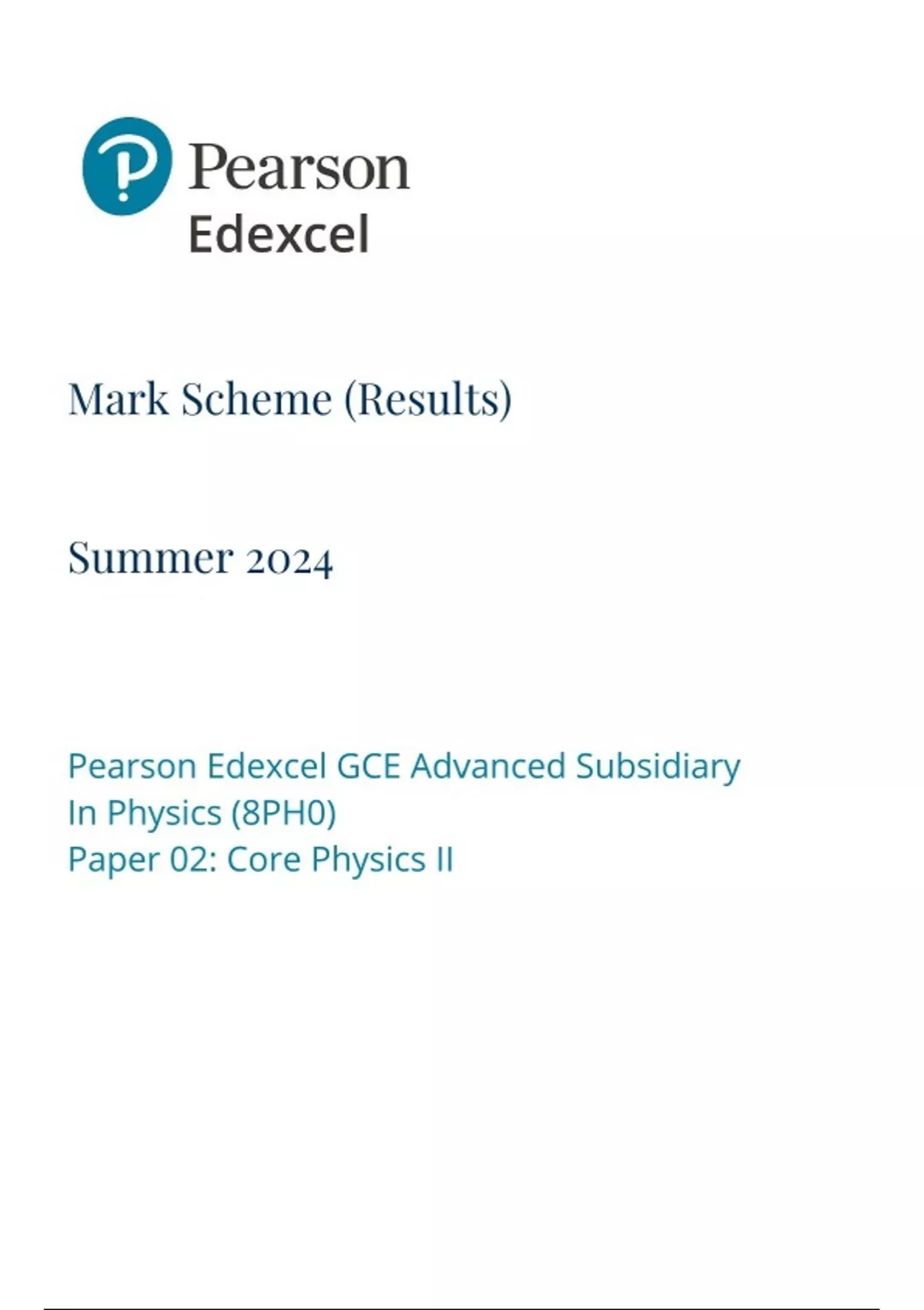 Pearson Edexcel Level 3 GCE Physics Advanced Subsidiary PAPER 2 JUNE 2024 MARK SCHEME