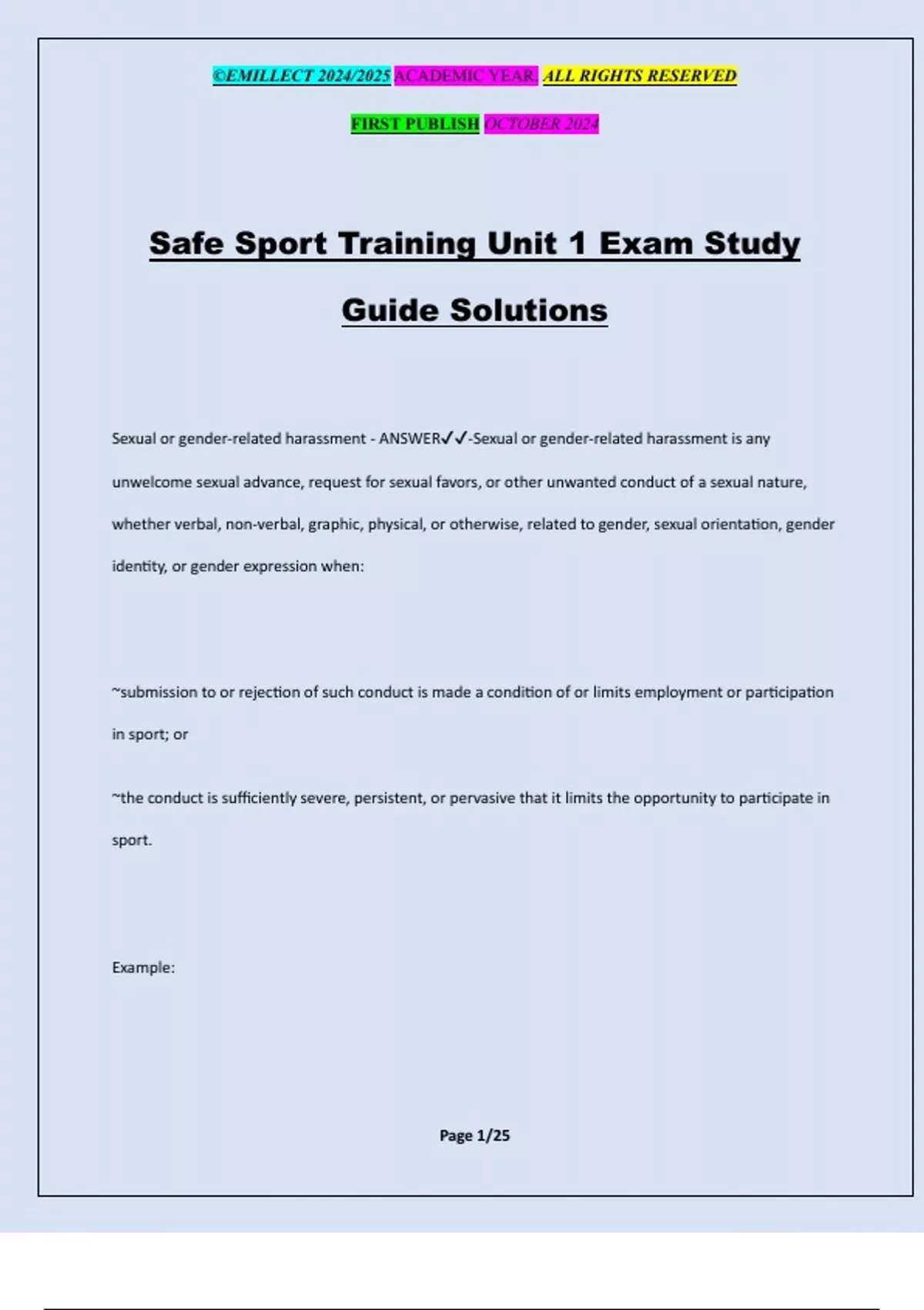 Safe Sport Training Unit 1 Exam Study Guide Solutions