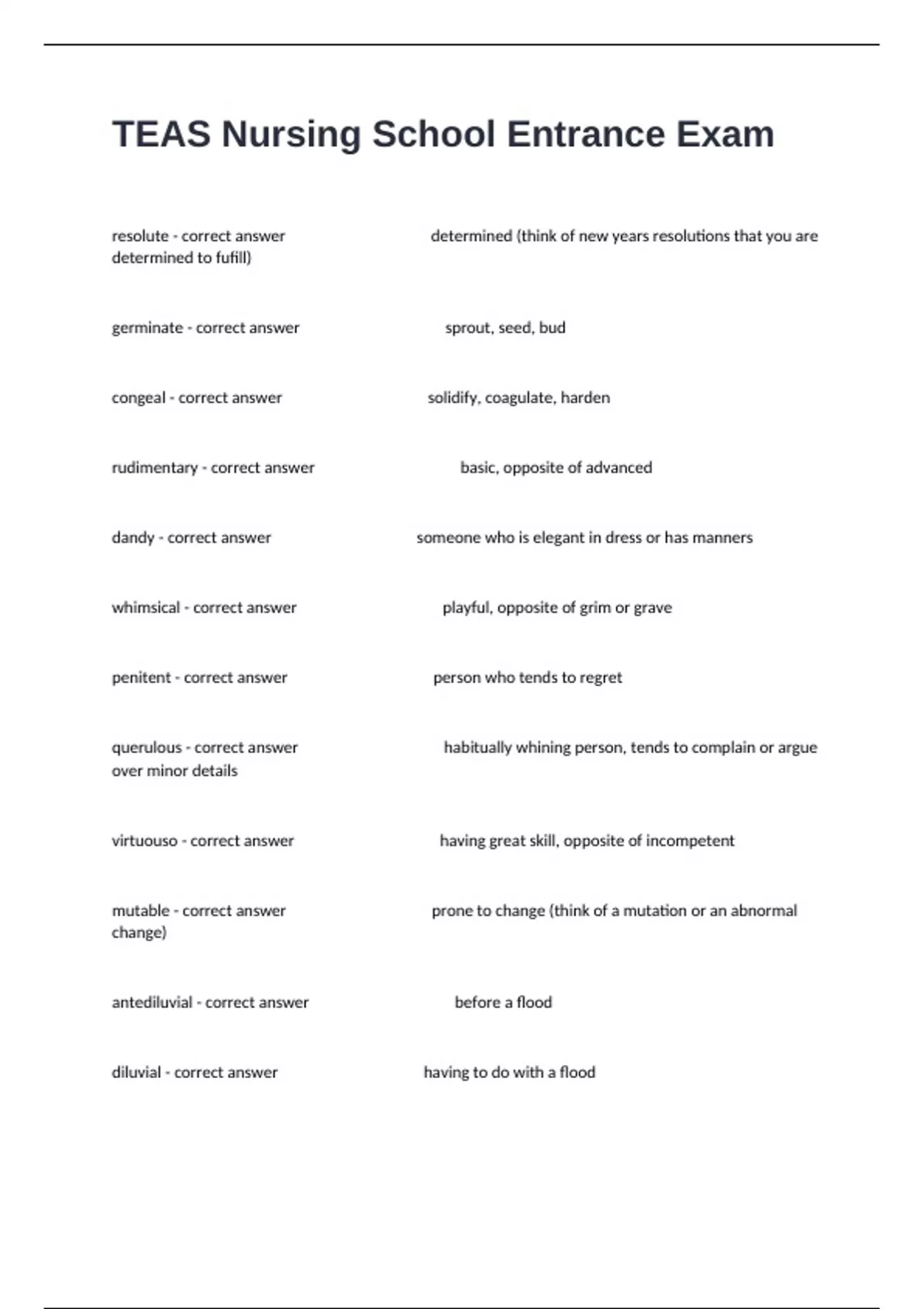 1 Exam (elaborations) TEAS / General Pre-Nursing Studies Certification Revised Exam Questions With Multiple Choices And Verified Answers. 2 Exam (elaborations) TEAS 7 NURSE HUB Exam Reported Questions Well Answered Guaranteed Pass. 3 Exam (elaborations) Comprehensive Teas Practice Exam I Certification Questions And Correct Detailed Answers Graded