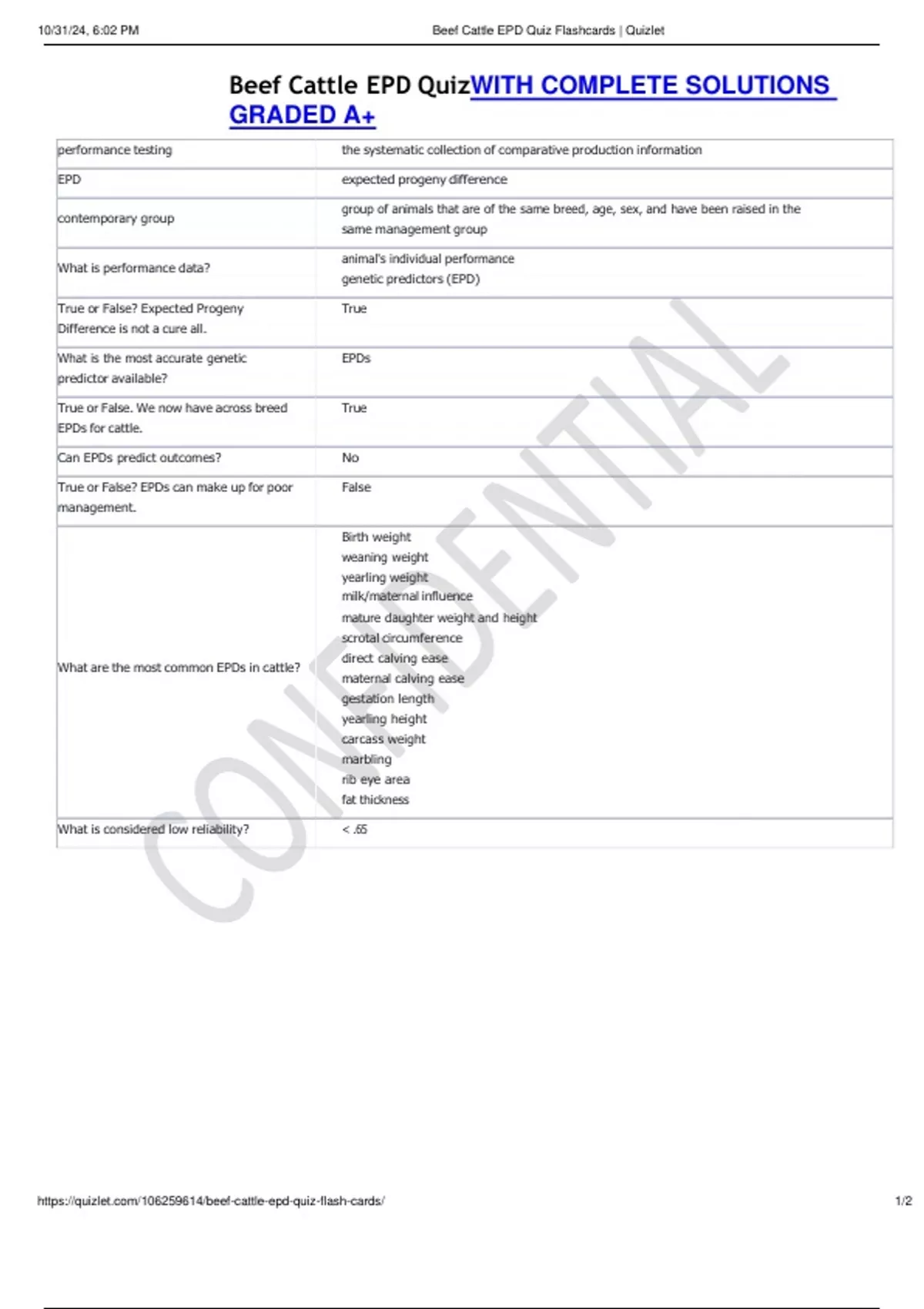 Beef Cattle EPD Quiz WITH COMPLETE SOLUTIONS GRADED A+