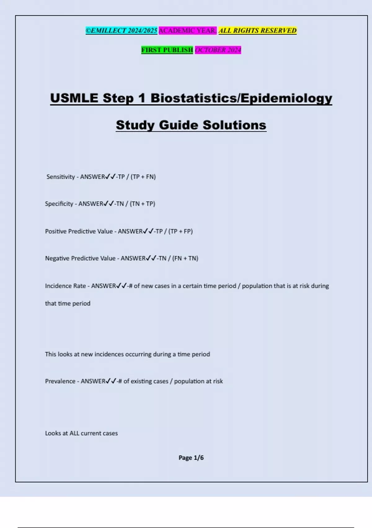 USMLE Step 1 Biostatistics/Epidemiology Study Guide Solutions