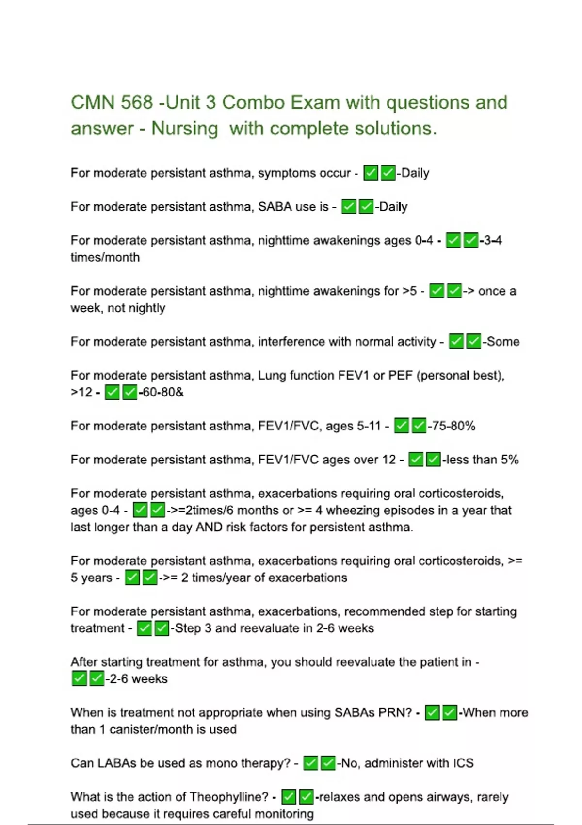 CMN 568 -Unit 3 Combo Exam with questions and answer - Nursing with complete solutions..pdf