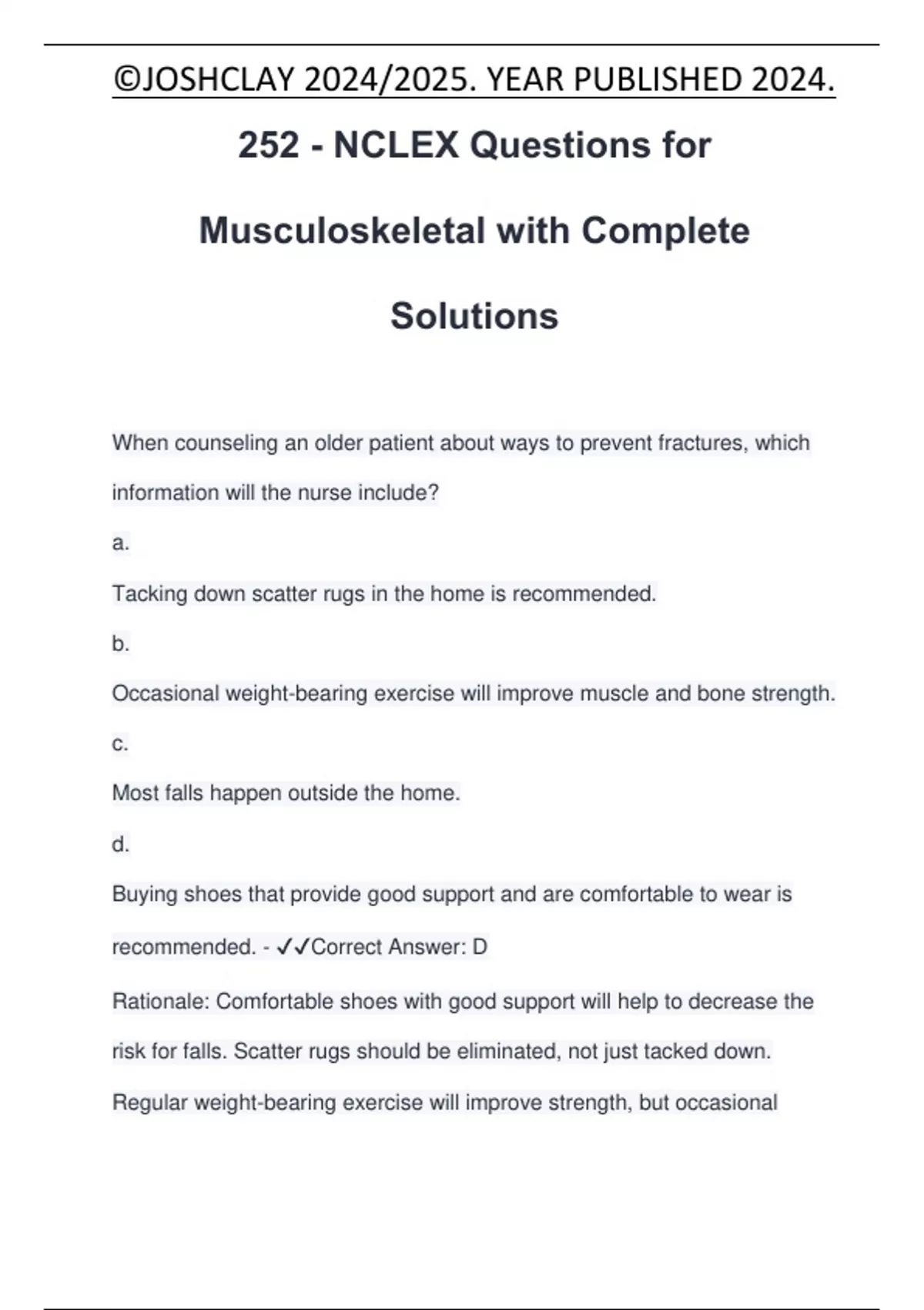 252 - NCLEX Questions for Musculoskeletal with Complete Solutions