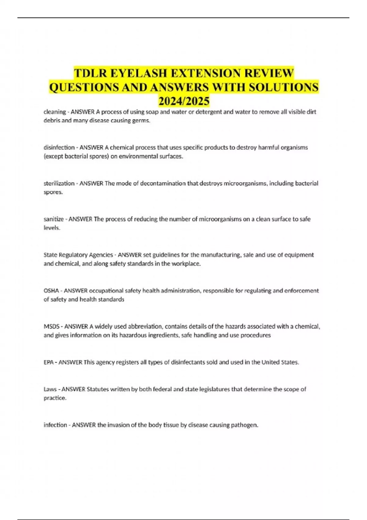 TDLR LASH EXTENSION PACKAGE DEAL QUESTIONS AND ANSWERS WITH VERIFIED SOLUTIONS UPDATED 2024