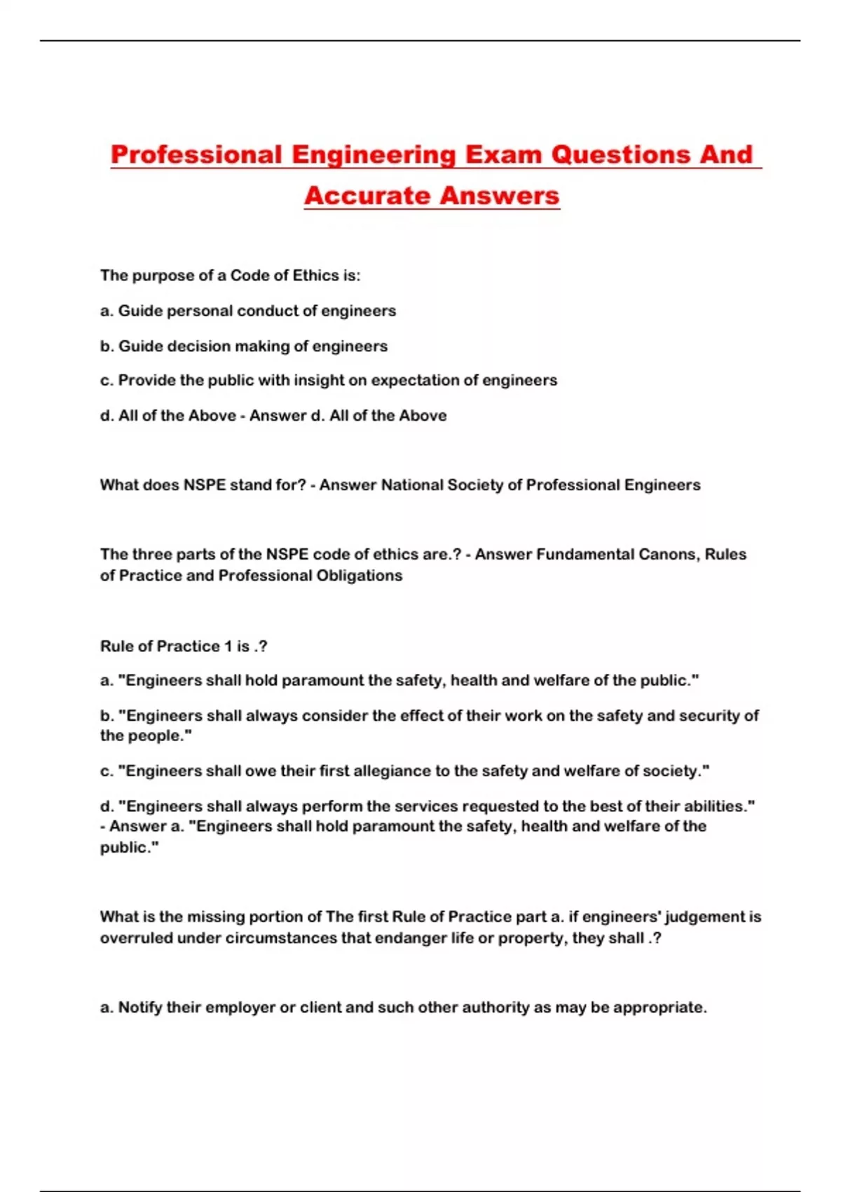 Professional Engineering Exam Questions And Accurate Answers