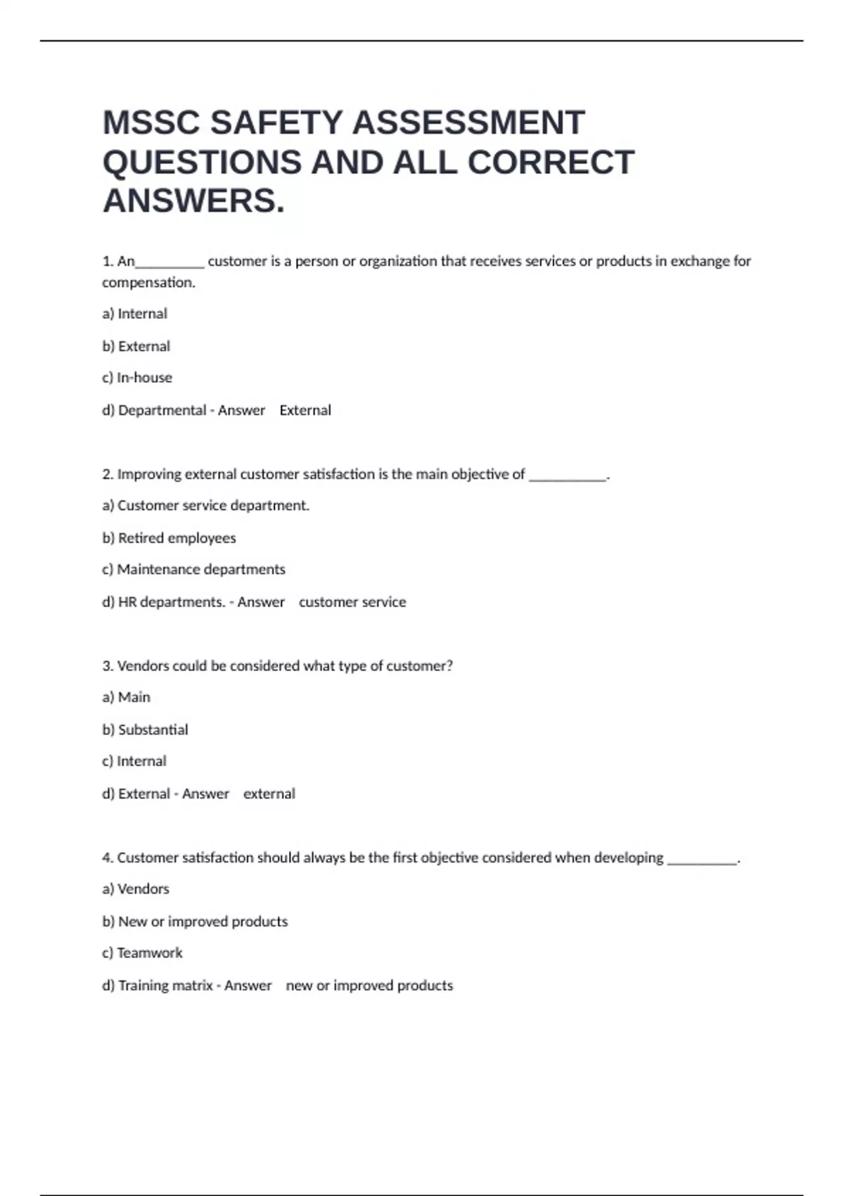 1 Exam (elaborations) Wonderlic Test Review Questions And Already Passed Answers. 2 Exam (elaborations) Tina Jones Abdominal Assessment Sub/Objective Data Questions With Solved Solutions. 3 Exam (elaborations) Pearson Assessment Questions And Correct Answers. 4 Exam (elaborations) Health Promotion and Disease Prevention Exam Questions Fully Answ