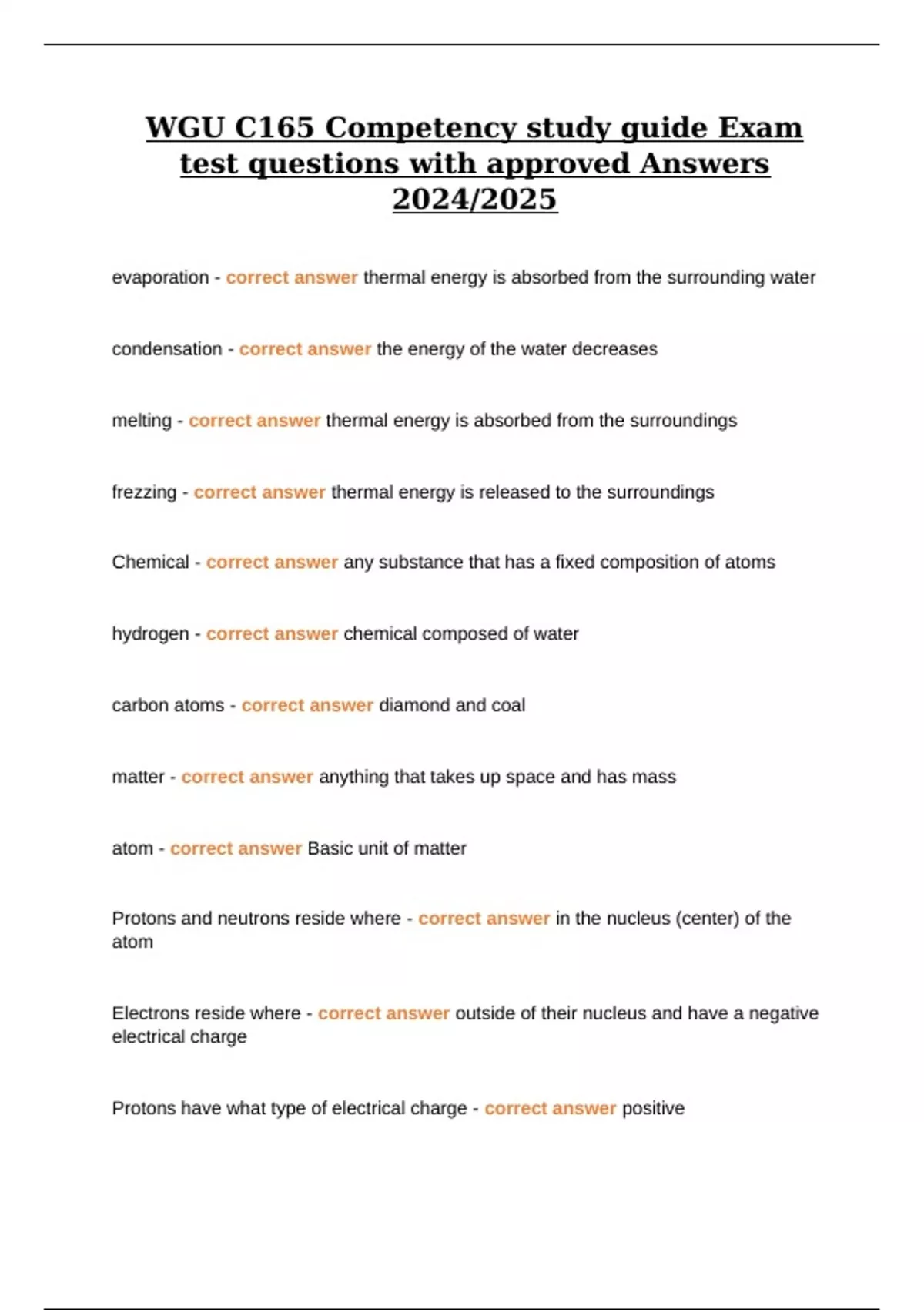 1 Exam (elaborations) WGU C165 Integrated Physical Sciences Proficiency knowledge test Exam Questions and certified Answers 2024/2025 2 Exam (elaborations) WGU C165 Competency study guide Exam test questions with approved Answers 2024/2025 3 Exam (elaborations) WGU C165 Integrated Physical Sciences Study test in depth Examination and 100% correct