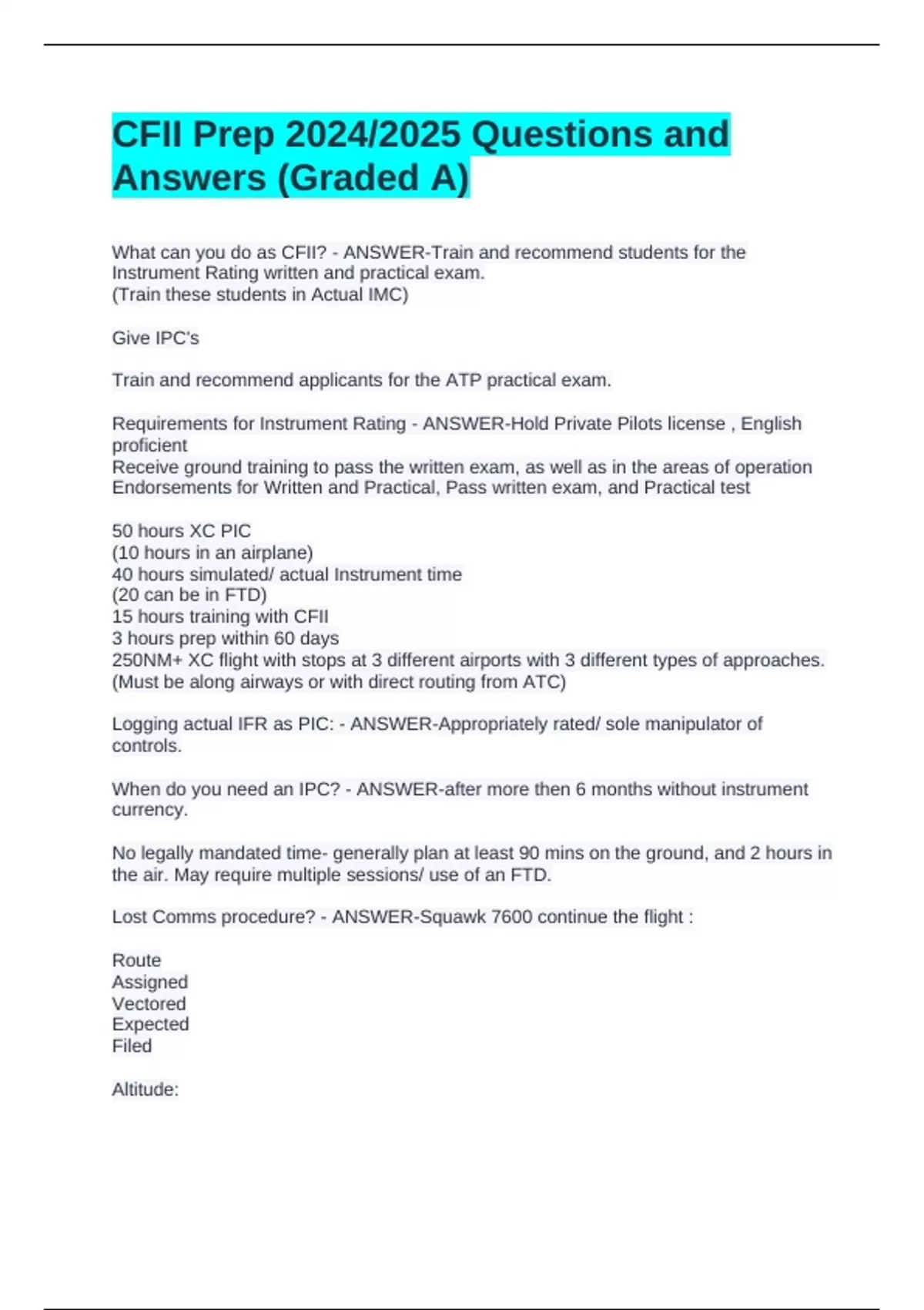 CFII EXAMS BUNDLE (PACKAGE DEAL)|| QUESTIONS AND ANSWERS 100% ACCURATE!!