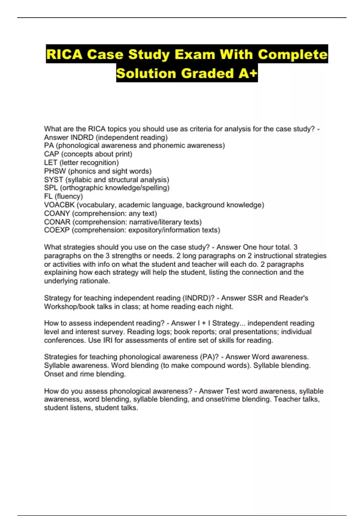 RICA EXAM WITH COMPLETE SOLUTIONS LATEST UPDATE