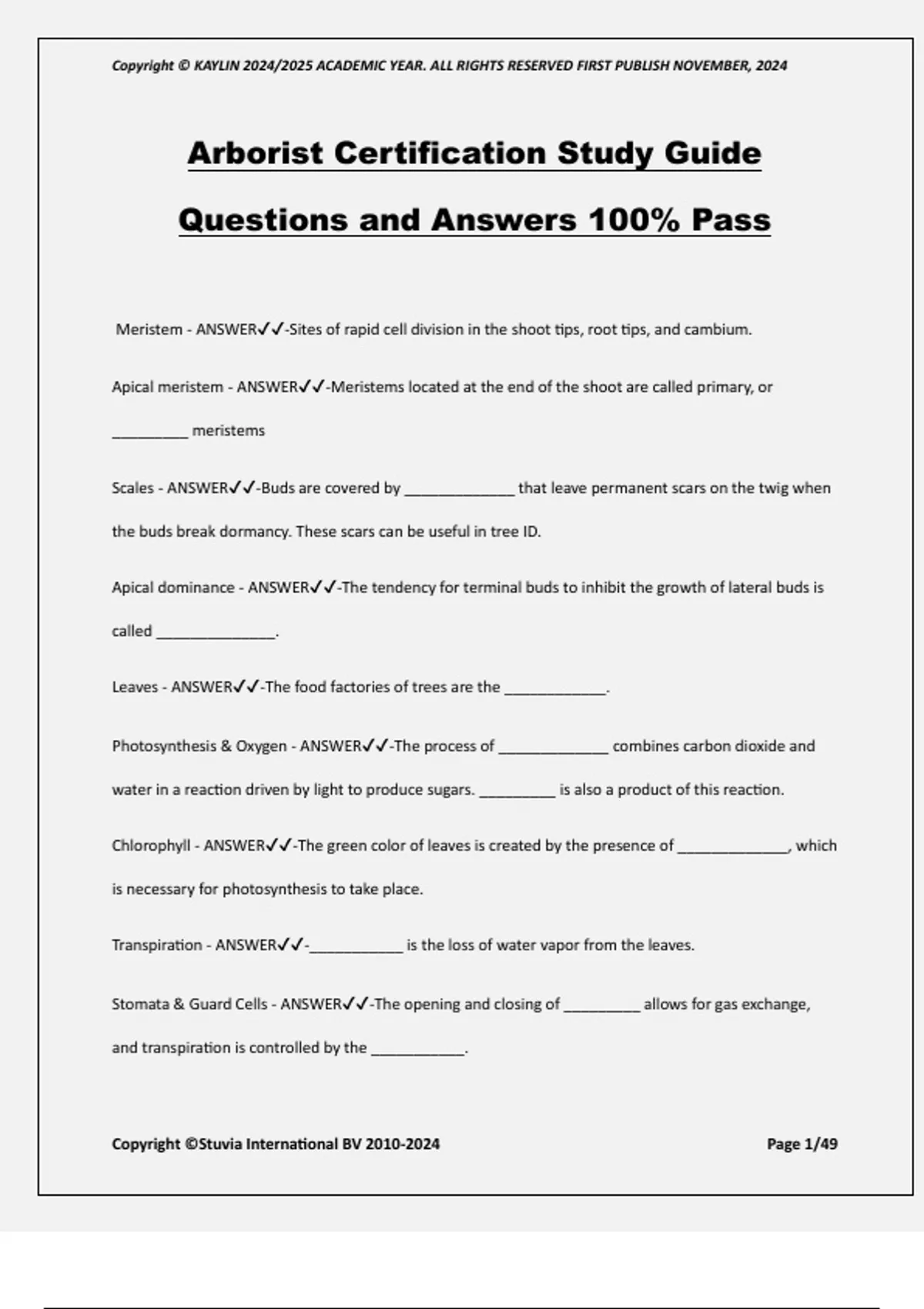 ISA Certified Arborist - Chapter 1 Study Guide Solutions