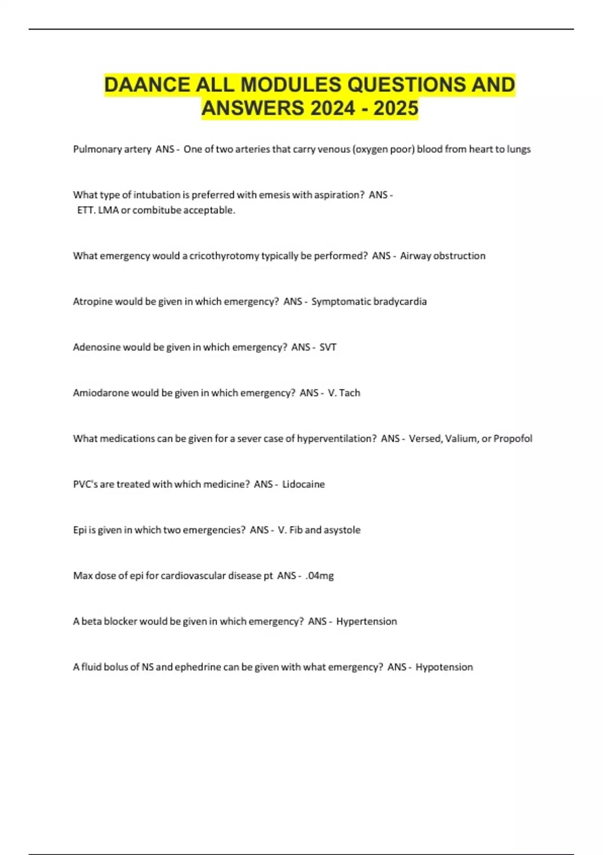 DAANCE Exam Study package deal questions with actual answers updated