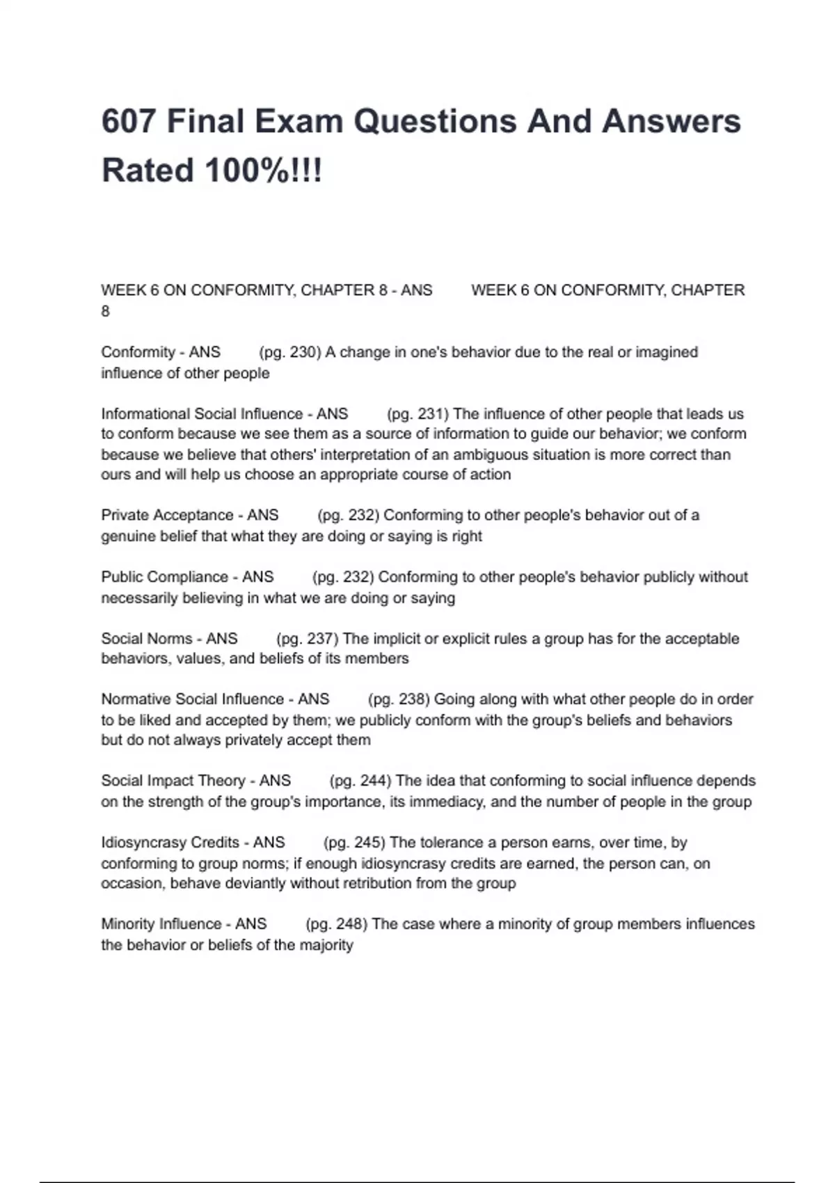 607 Exam Updated Questions With Complete Solutions Package Deal