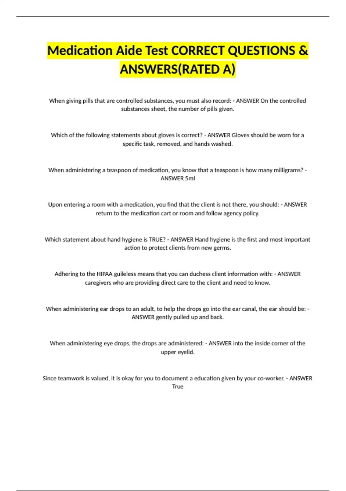 MEDICATION AIDE STATE EXAM 2024 LATEST UPDATE CORRECT 100% COMPLETE EXAM BUNDLEMEDICATION AIDE STATE EXAM 2024 LATEST UPDATE CORRECT 100% COMPLETE EXAM BUNDLEMEDICATION AIDE STATE EXAM 2024 LATEST UPDATE CORRECT 100% COMPLETE EXAM BUNDLEMEDICATION AIDE STATE EXAM 2024 LATEST UPDATE CORRECT 100% COMPLETE EXAM BUNDLE