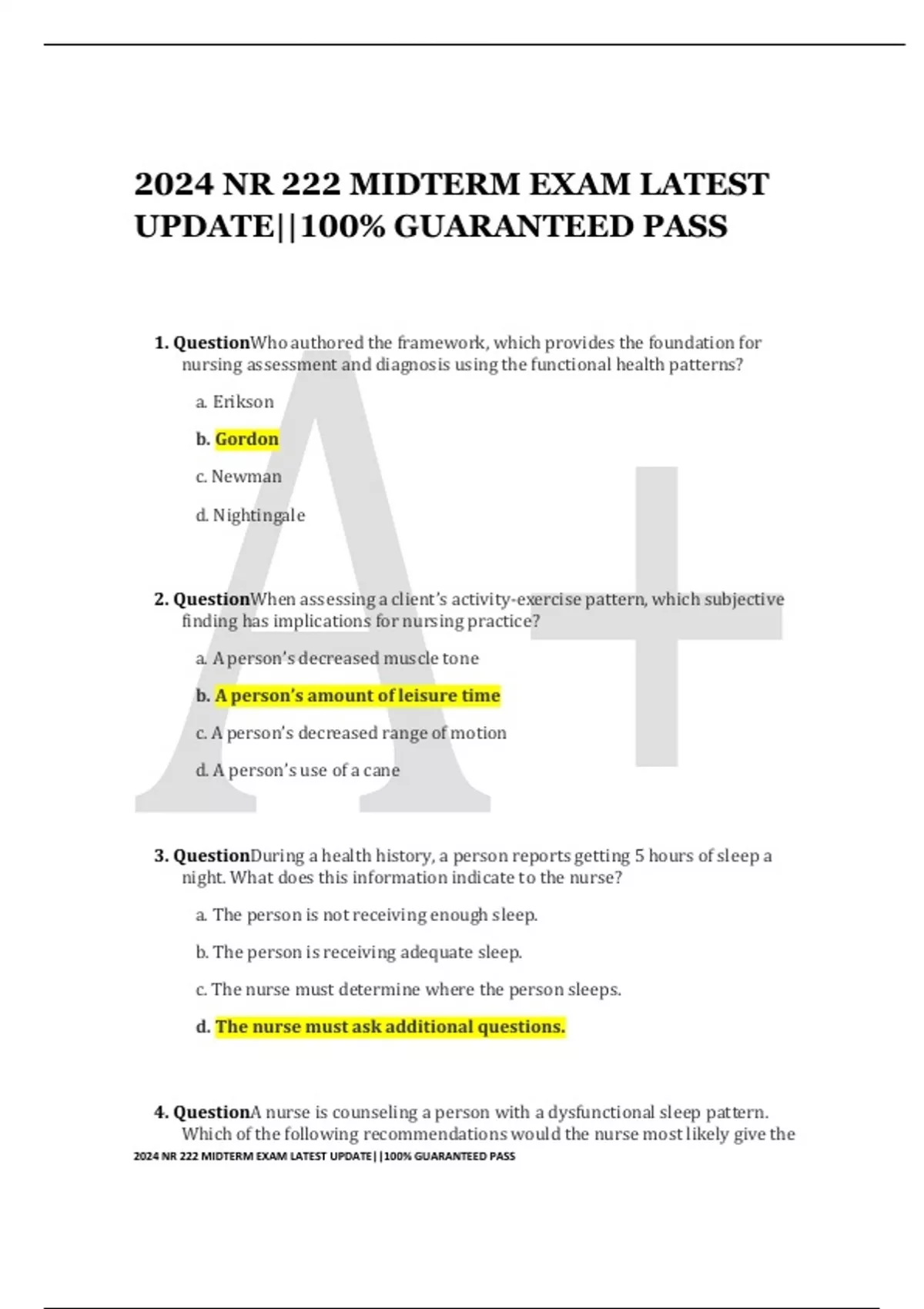 NR 222 (COMPLETE EXAM PACKAGE) WELL STRUCTURED Q&A 100% SOLVED GRADED A