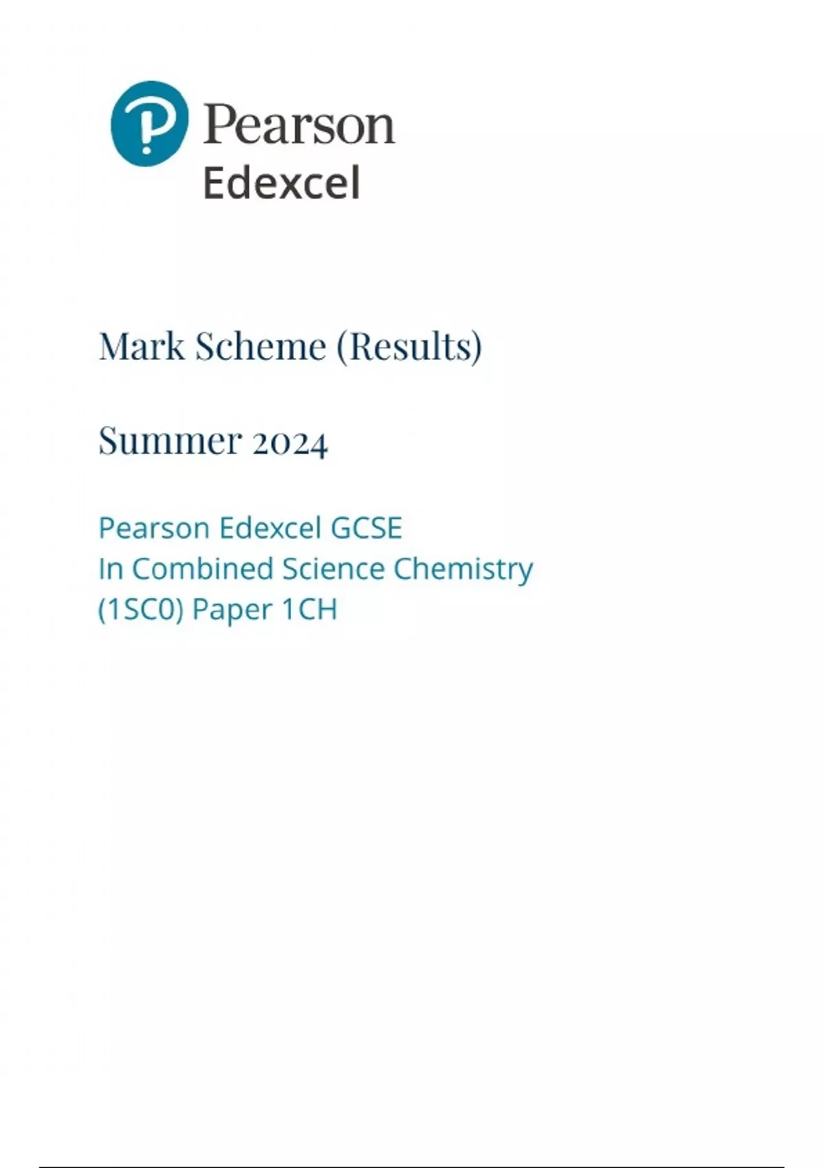 Pearson Edexcel Level 1/Level 2 GCSE (9–1) Combined Science Chemistry Paper 2 Higher Tier JUNE 2024 QUESTION PAPER AND MARK SCHEME