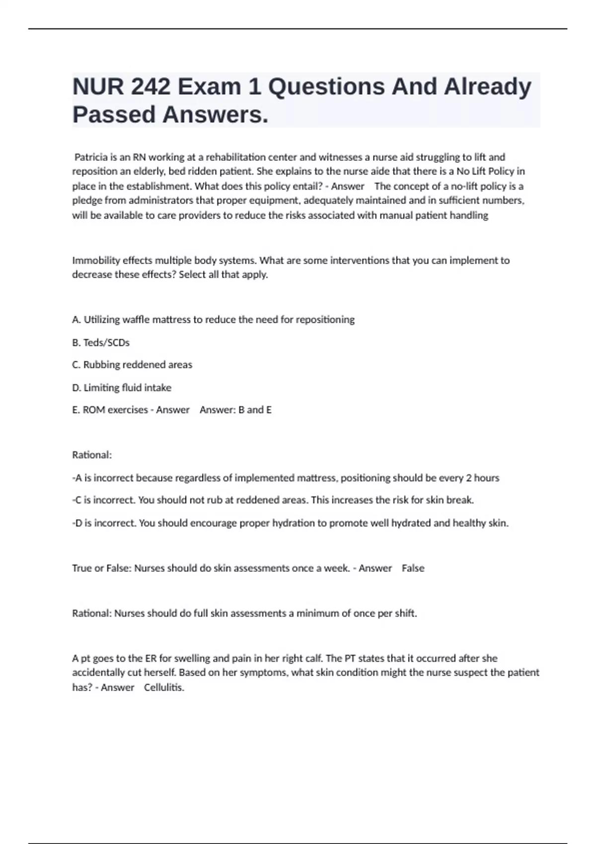 NUR 242 Compilled Exams Package Deal Bundle Updated Bundle!!