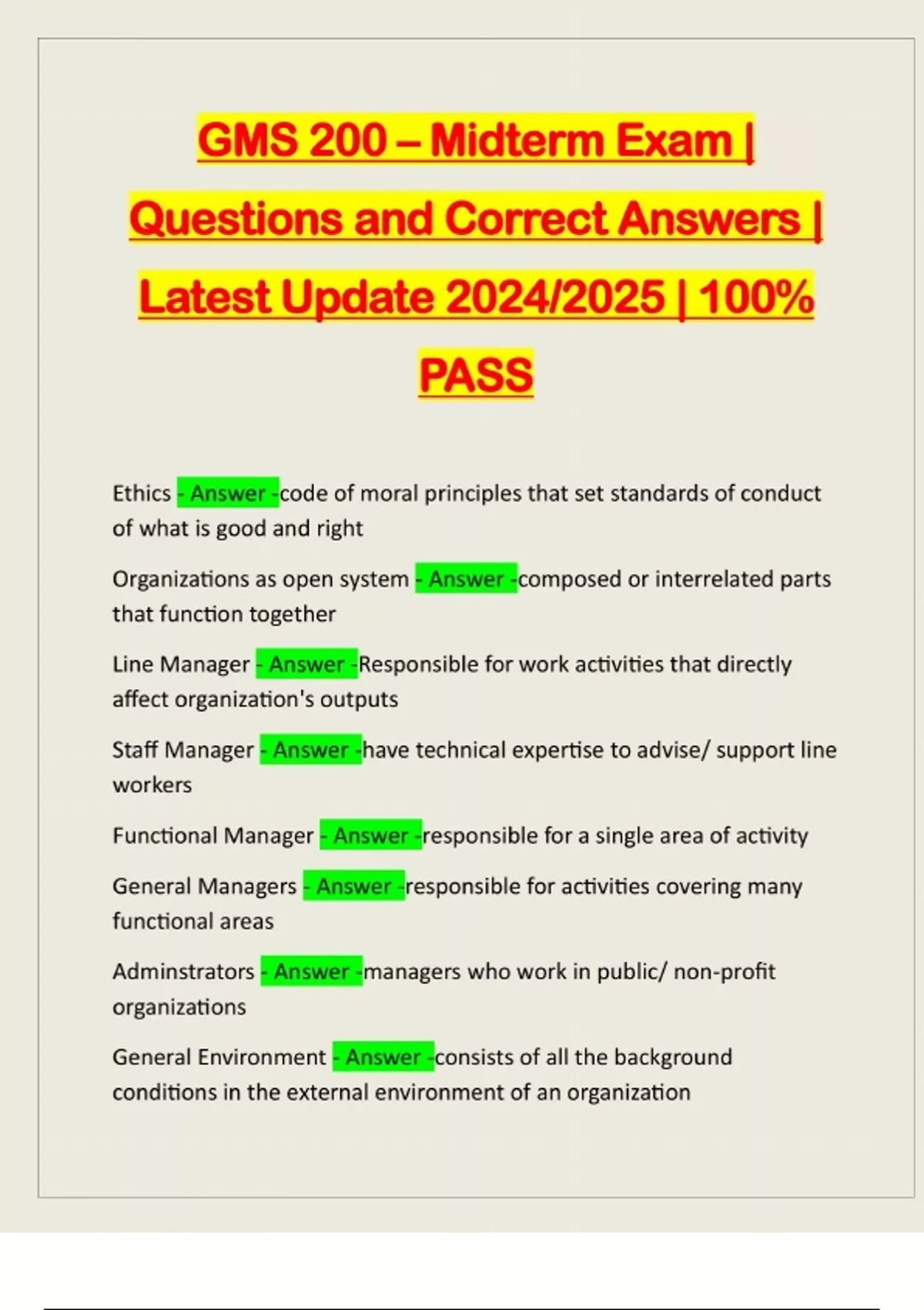 GMS (GLOBAL MANAGEMENT) PACKAGE DEAL EXAMS:::: QUESTIONS AND CORRECT ANSWERS | LATEST UPDATE 2024/2025 | GRADED A+