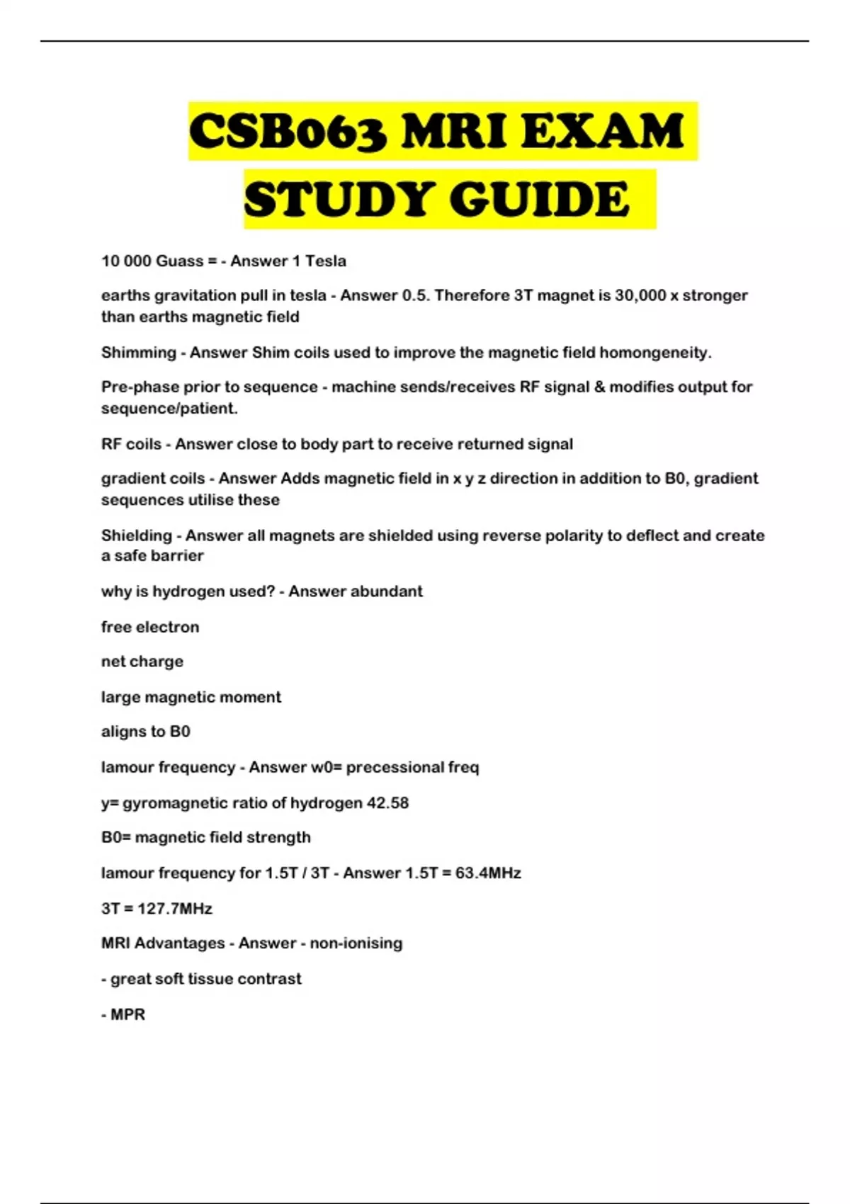 CSB063 PACKAGED EXAMS WITH COMPLETE SOLUTION