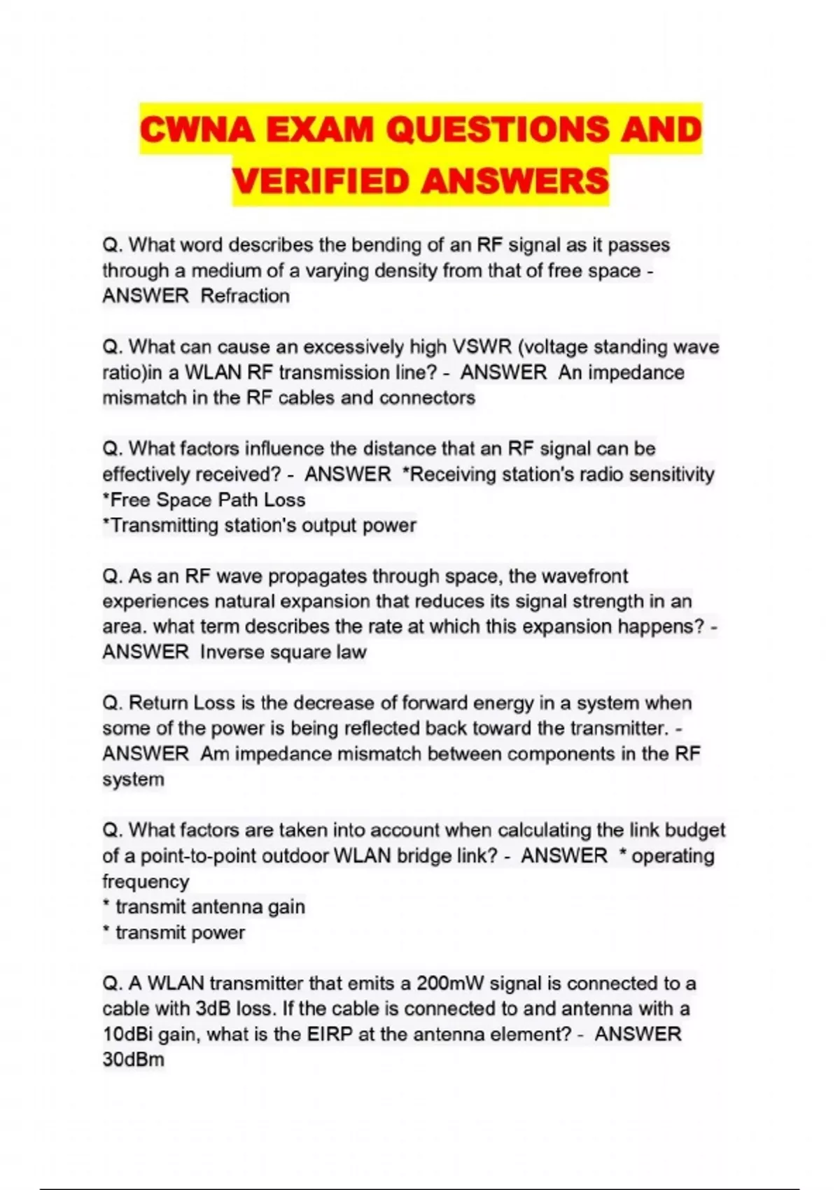 CWNA TEST QUESTIONS AND VERIFIED ANSWERS