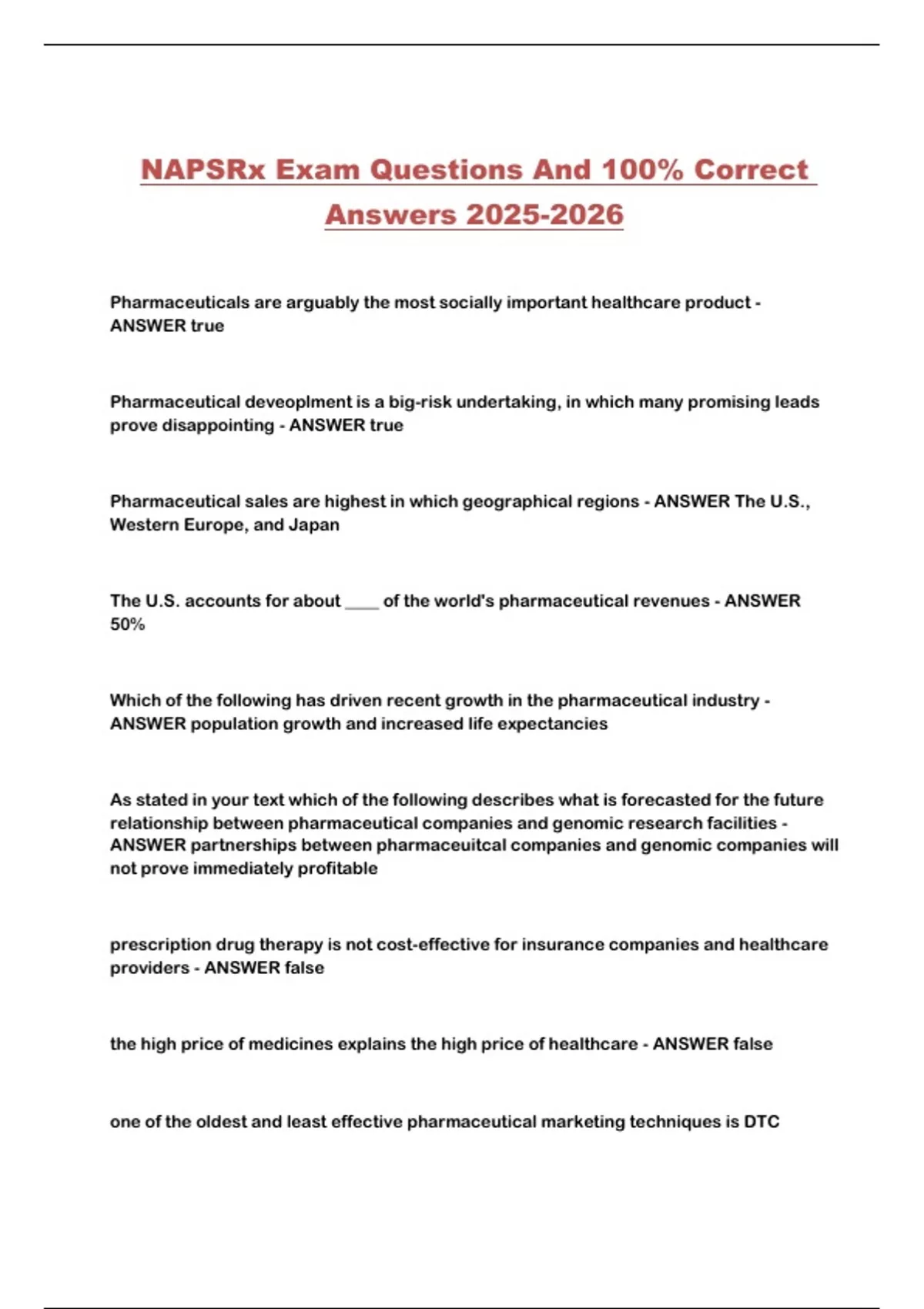 NAPSRx Study Guide Questions And Accuarate Answers
