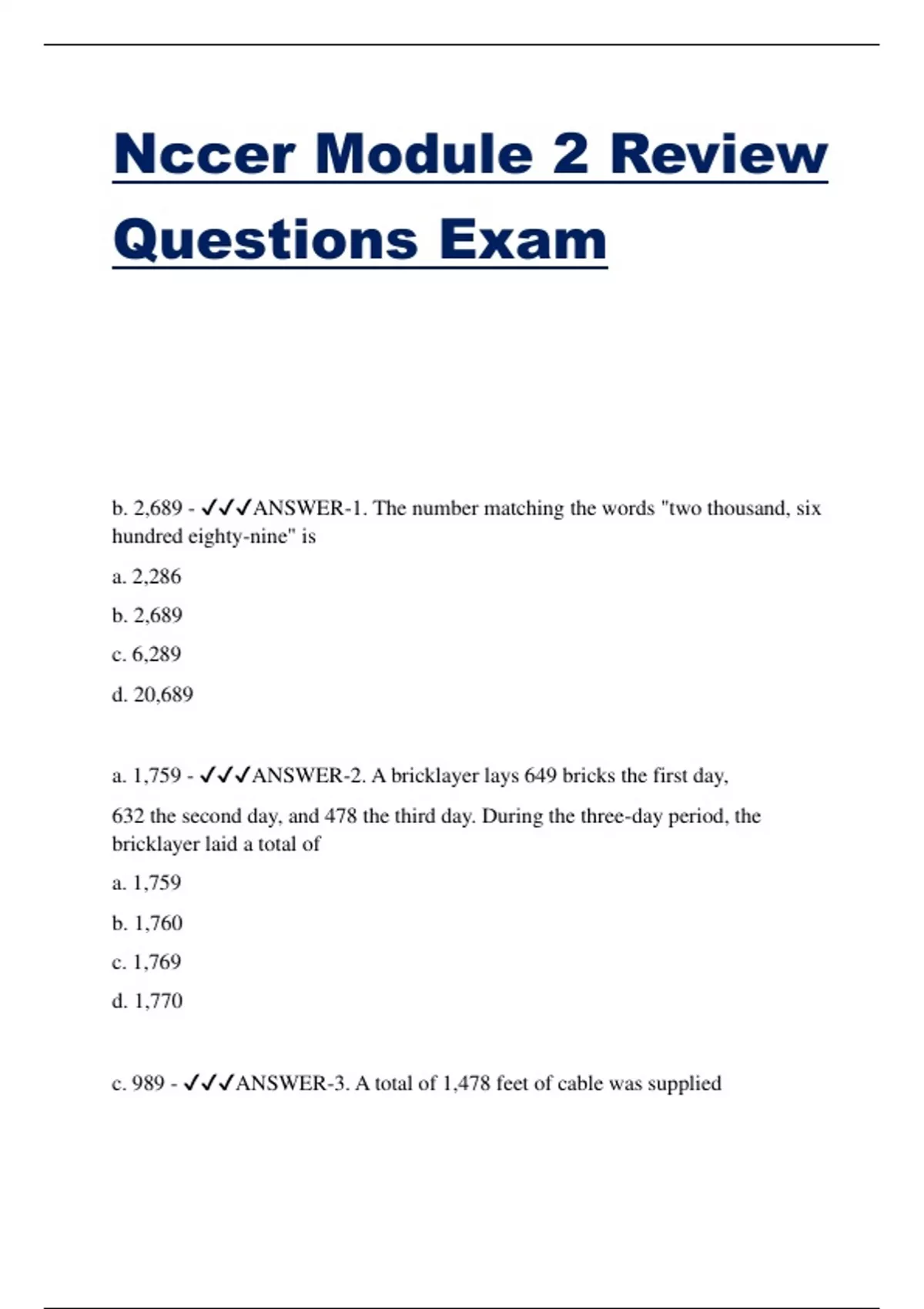1 Exam (elaborations) Nccer Study Guide Module 1 Basic Safety Exam 2 Exam (elaborations) NCCER STUDY GUIDE EXAM UPDATE. 3 Exam (elaborations) NCCER Module 9 Introduction To Materials Handling Latest Update 4 Exam (elaborations) NCCER Module 9 (material handeling) EXAM 2024 5 Exam (elaborations) NCCER Module 8 (employability skills) EXAM. 6 Exa