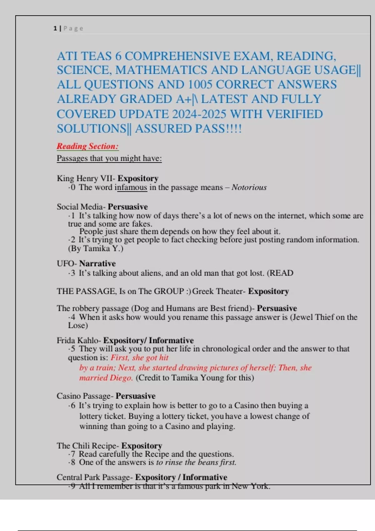 ATI TEAS 6 AND 7 COMPREHENSIVE PRACTICE EXAMS|| ATI TEAS 7 MATHEMATICS, SCIENCE, LANGUAGE USAGE, AND READING COMBINED WITH ALL QUESTIONS AND 100% CORRECT ANSWERS ALREADY GRADED A+|| LATEST AND COMPLETE WITH FULLY VERIFIED SOLUTIONS|| ASSURED PAS