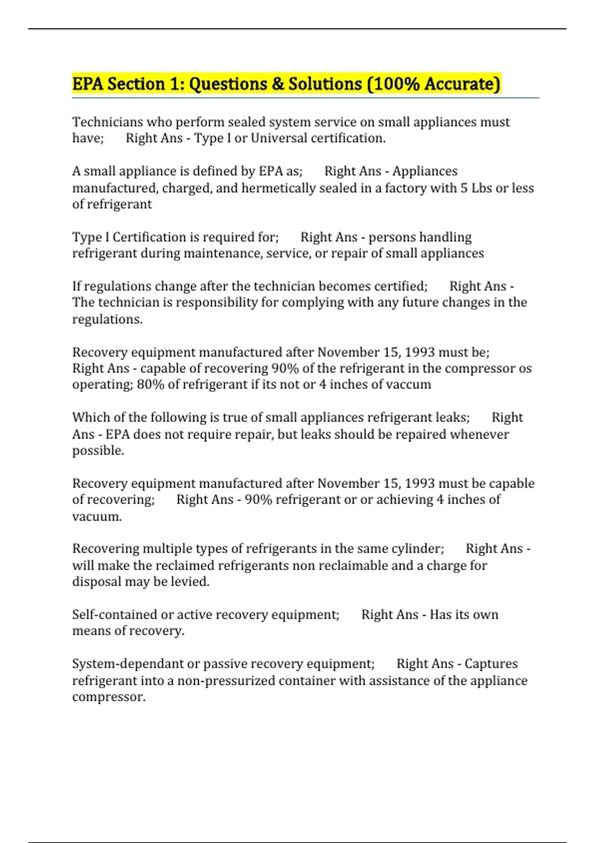 BUNDLE::- EPA 609 CERTIFICATION EXAMS - ENVIRONMENTAL PROTECTION AGENCY